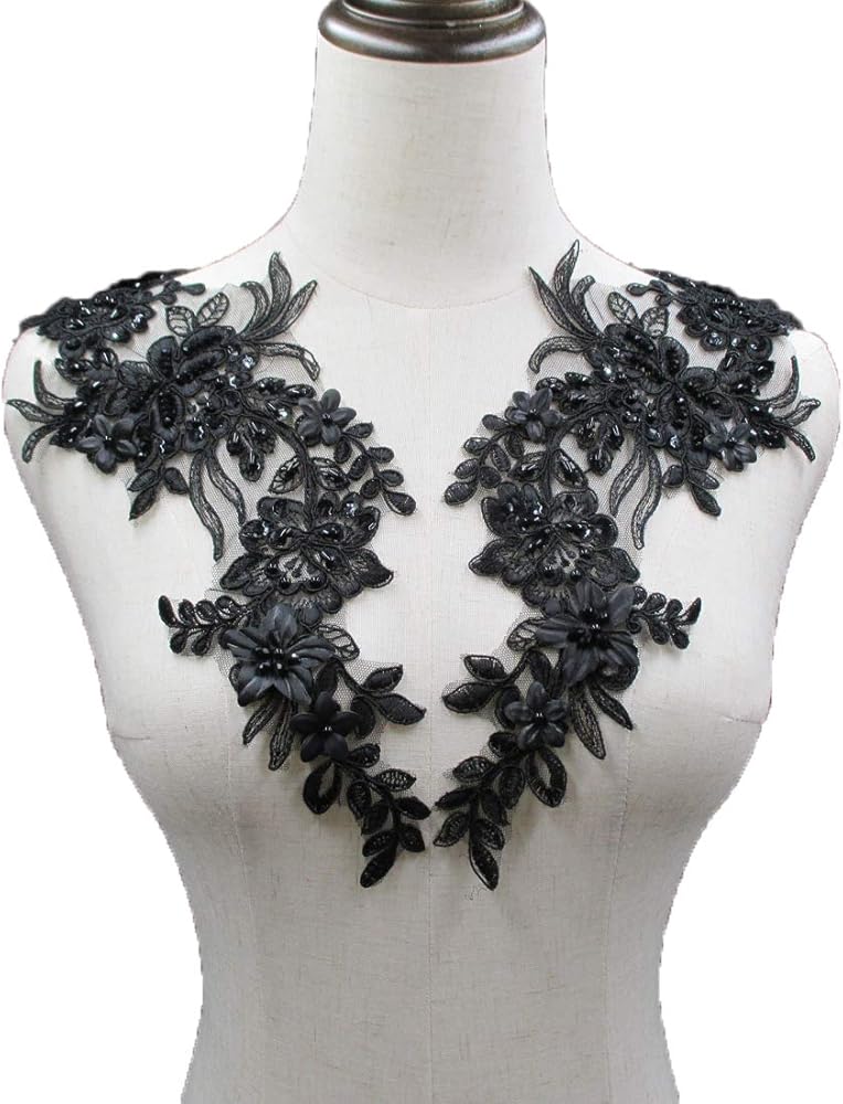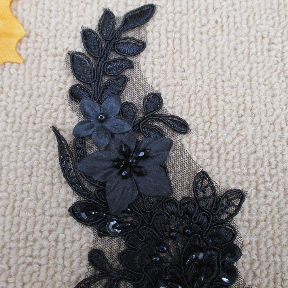 This unique appliques have beautiful rayon embroidered floral pattern with sequins and beads. The applique is made on a mesh backing for easy stitching. It can easily be hand-stitched onto garments, accessories and more. Each piece of applique measures 5" X 15".