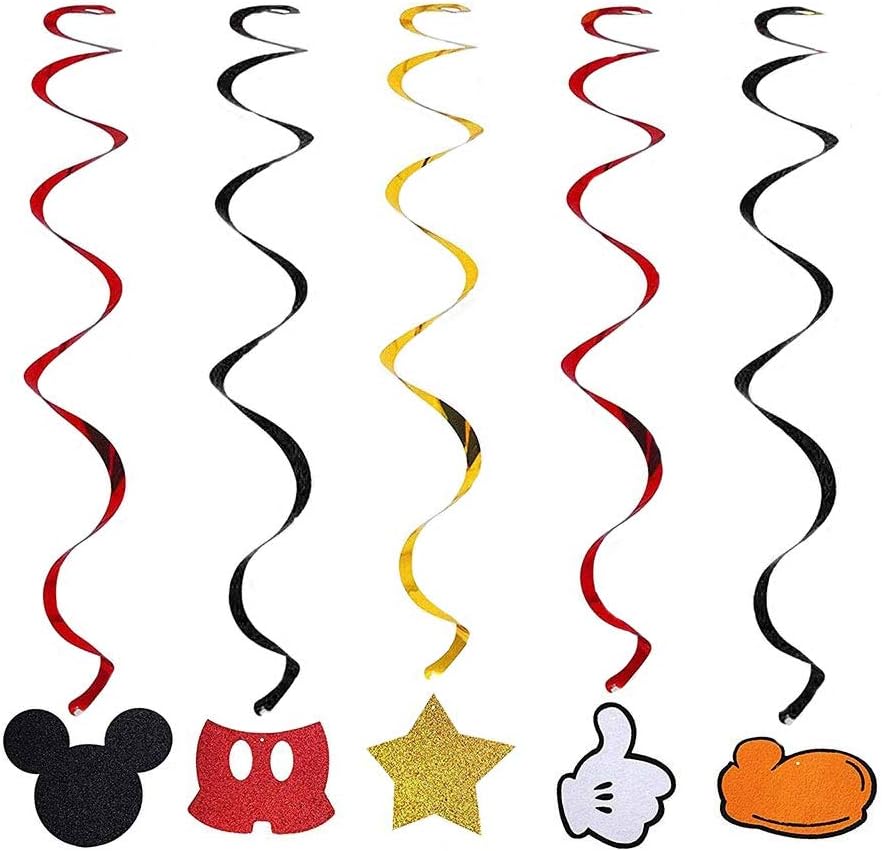 اجعل حفل عيد ميلاد أميرك الصغير أكثر لمعانًا مع هذه الزخرفة الحلزونية المعلقة الساحرة. مع رأس الفأر الأسود الأنيق والنجمة الصفراء وأيدي الفأر وسراويل الفأر وقصاصات أحذية الماوس.