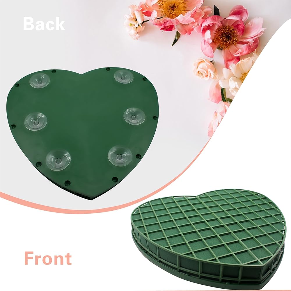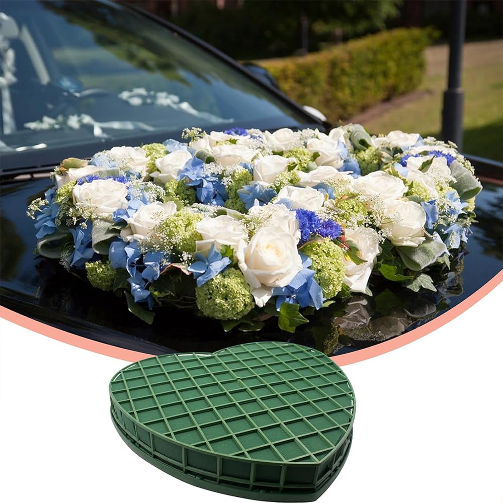 قطعتان من الطوب الزهري على شكل قلب للزفاف، مكعبات إسفنجية زهرية مقاس 12 * 13 بوصة مع صينية كأس شفط لبائع الزهور لتزيين سيارة الزفاف لوازم ترتيب الزهور