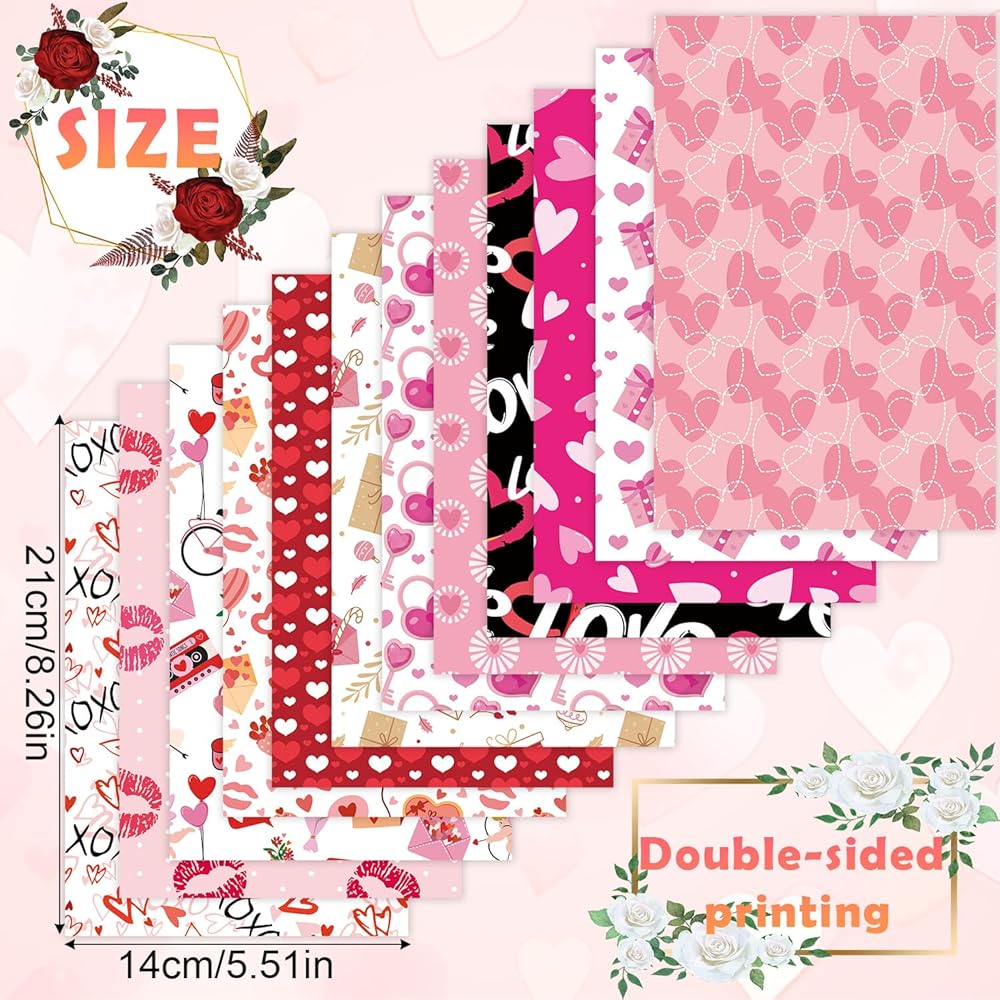 Use Occasions: Valentine's day pattern papers are suitable for most activities, such as valentine's day, birthday parties, anniversaries, etc. They can also used for paper-cut paintings, commemorative books, photo albums, etc. Multi-person DIY activities will be a very meaningful experience.
