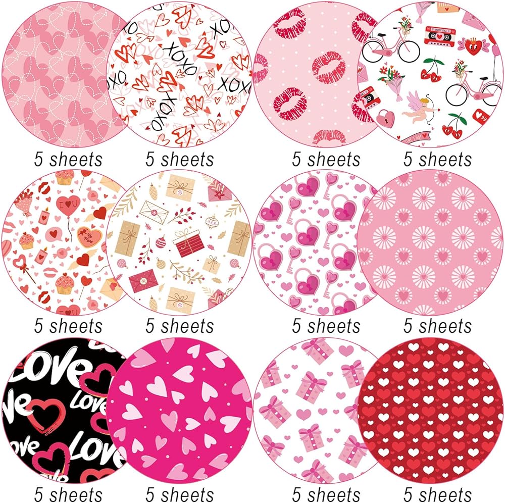 60 قطعة 12 تصميمًا من أوراق نمط عيد الحب، مقاس 8.27 × 5.51 بوصة، ورق قصاصات على شكل قلب الحب، ورق بطاقات عيد الحب الحلو، ورق حرفي مزخرف، مطوية بشكل مسطح لصنع بطاقات القصاصات لتزيين سجل القصاصات
