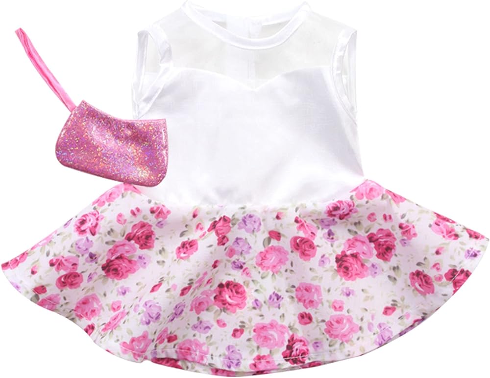 Sophia's Two-Piece Floral Spring Dance Dress with White Mesh & Sparkly Wristlet Purse Complete Outfit Set for 18 Dolls, White, White/Pink, One Size
