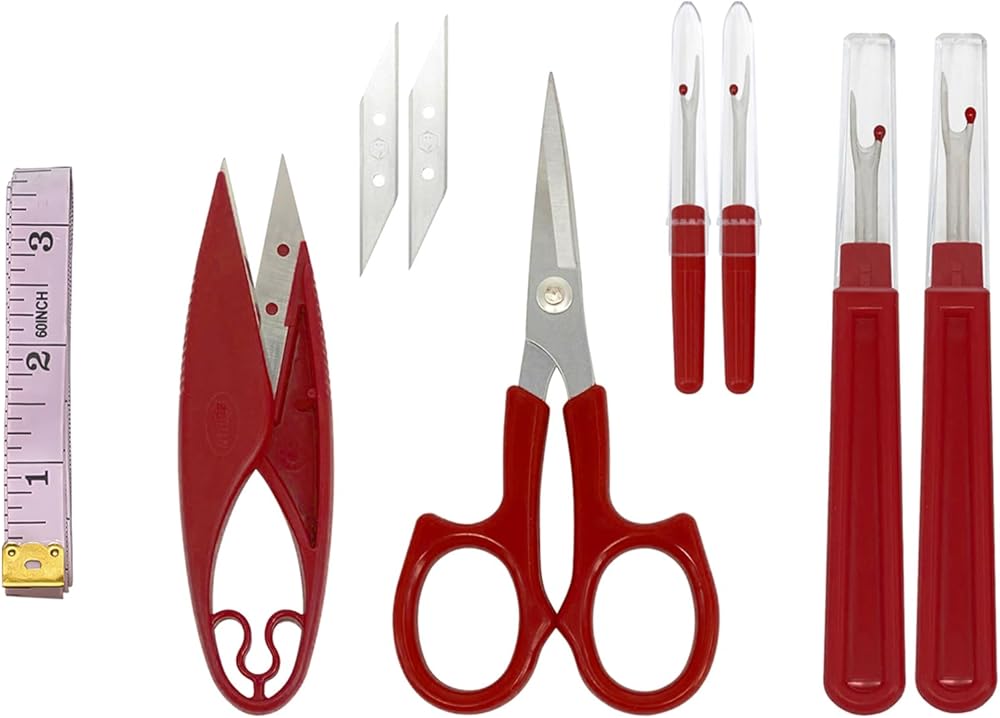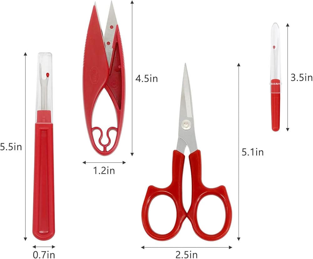 Seam Ripper Size: Small seam rippers are 3.5 inch length, the large rippers and the seam slicer are 5.5 inch. Double-edged thread cutter are 4.5inch length, The Scissor is 5.1 inch length Made of high quality metal and plastic, Easy and convenient to get into those small places and undo fine sching; The clear plastic cap can become an extension handle of the small sewing unpicker