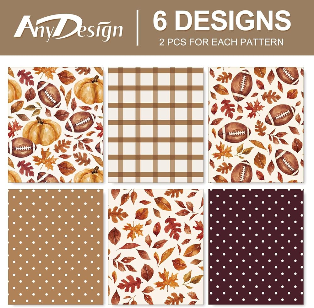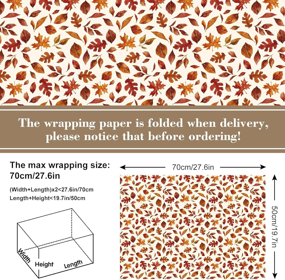 12 sheets wrapping paper designed in fall theme, patterned with pumpkin, football, maple leaves, etc., vintage and exquisite, wonderful for your gift wrapping.