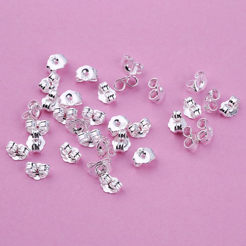 20PCS 925 Sterling Silver Butterfly Earbuds Earrings Back 925 Silver Hypoallergenic Suitable for Back and DIY Production of Various Ear Accessories