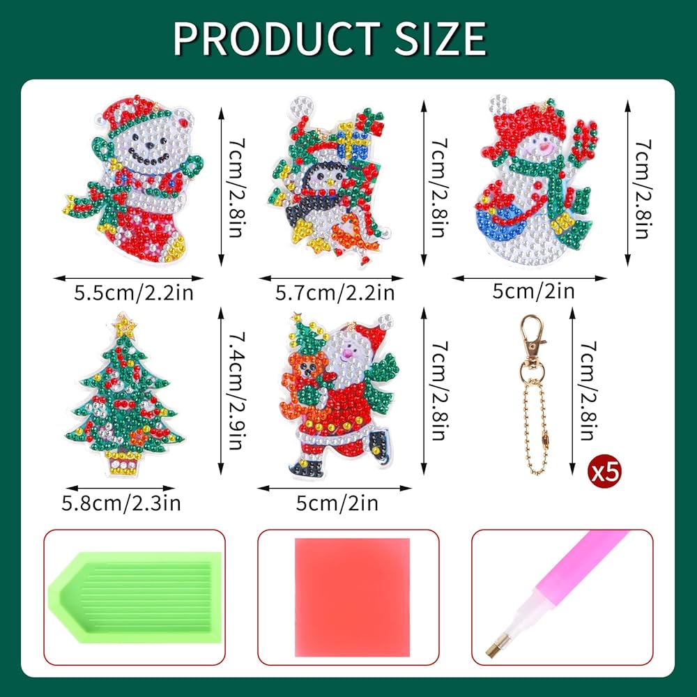 5 Pcs Christmas Diamond Keychain