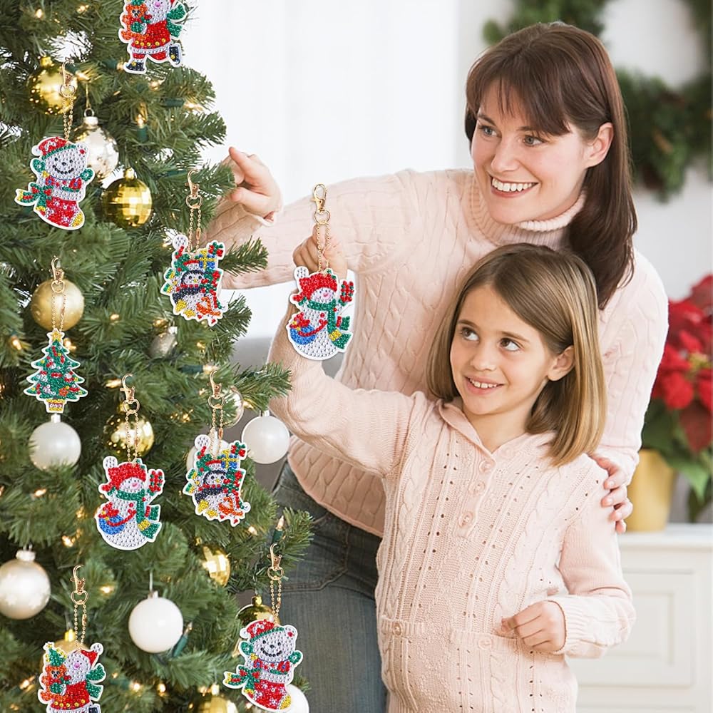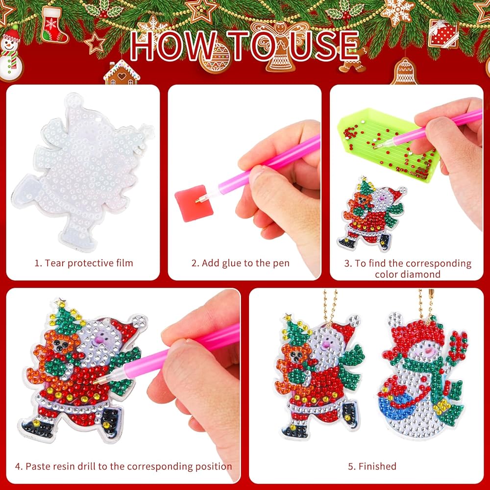 Christmas Diamond Painting Keychain Diamond Painting Ornament,5D DIY Diamond Painting Keychain,Santa Claus Snowman Diamond Painting Kits Christmas Ornaments for Kids Christmas DIY Crafts Home Decor