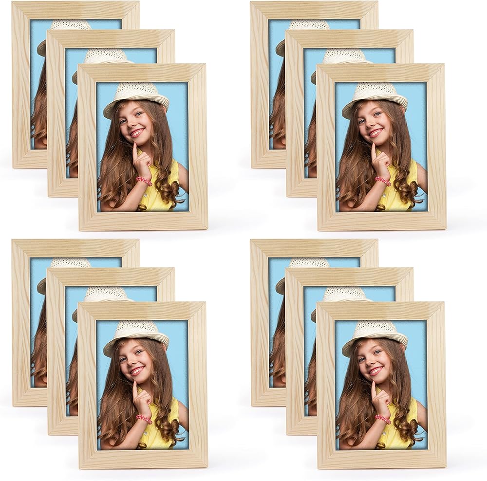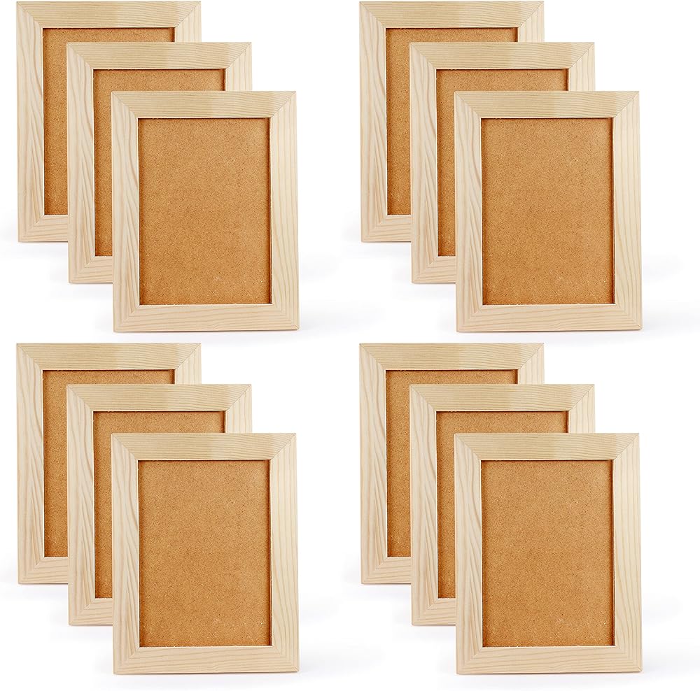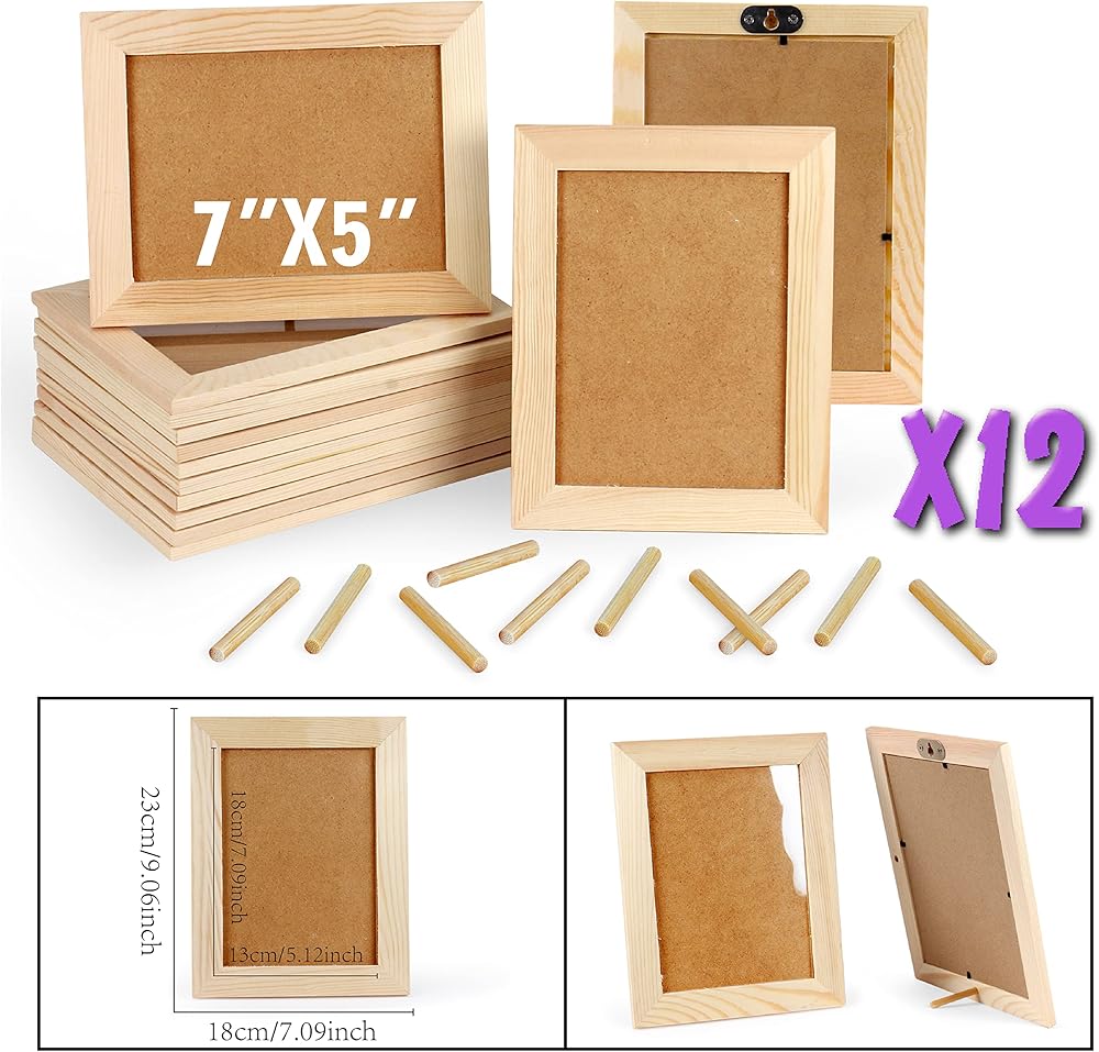 اطارات صور يدوية الصنع من 12 قطعة من الخشب غير المصقول مقاس 5×7، اطارات صور من خشب الصنوبر الصلب للتزيين، لمشاريع الرسم الفنية والحرفية، (مقاس اطار 7×9 يحمل صور 7×5) للبالغين والاطفال