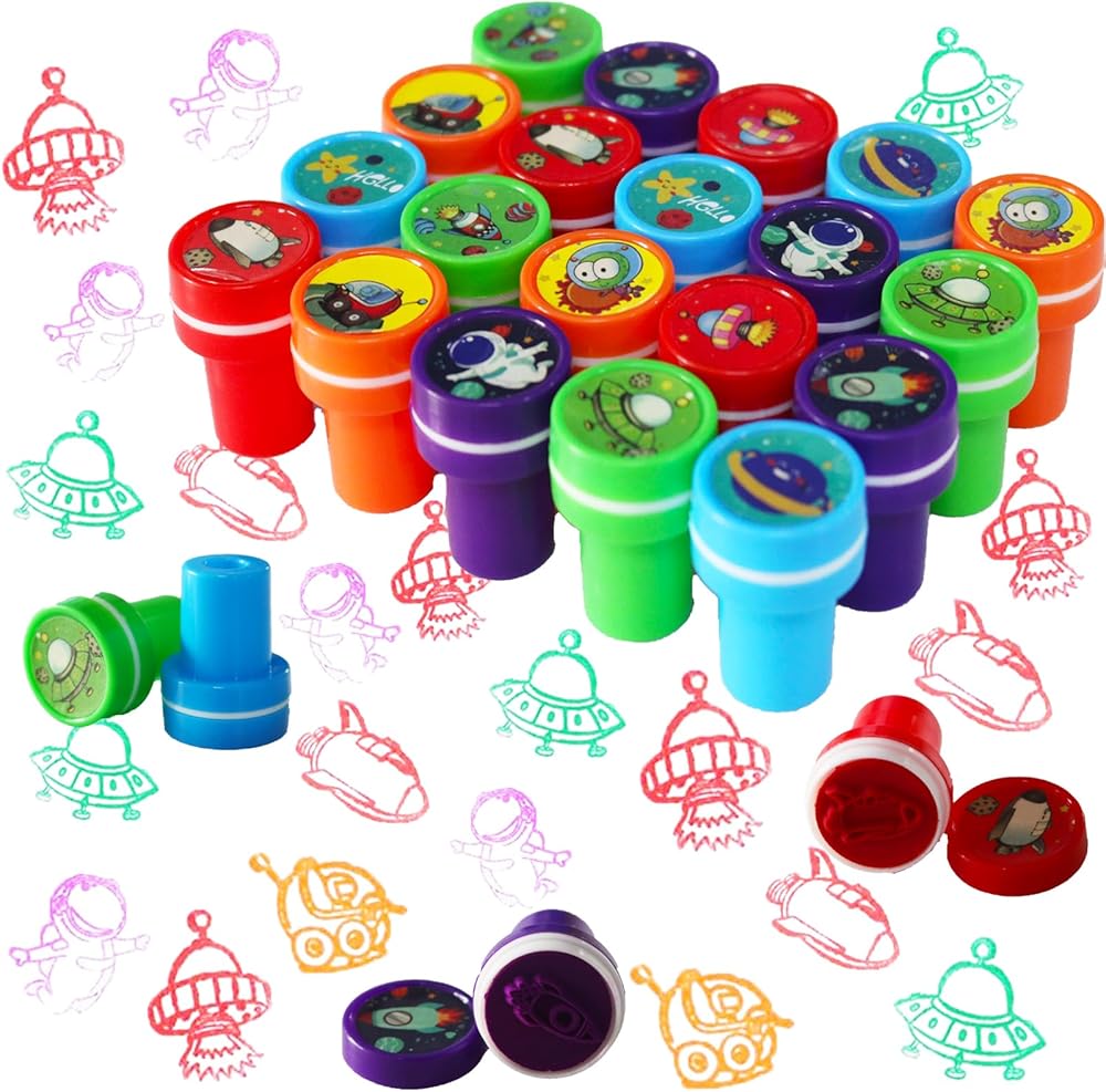 هدية مثالية للحفلات - مجموعة طوابع الألعاب المكونة من 30 قطعة ذات طابع الفضاء تتميز بألوان زاهية وتصميمات ممتعة، مما يجعلها الخيار الأمثل لهدايا الحفلات، وحشو البيناتا، وحشو حقائب الهدايا، وحشو البيض، ومكافأة الفصل الدراسي، وختم المعلم، وجوائز الكرنفال، والمزيد. !