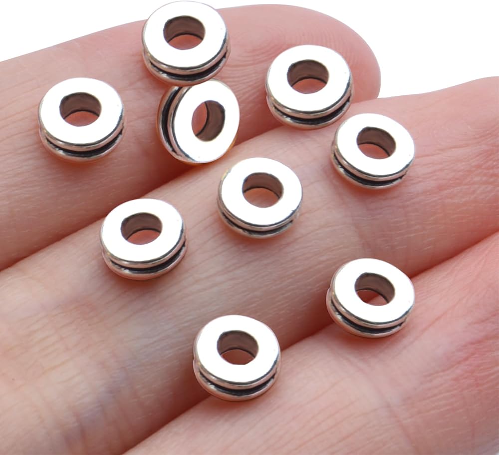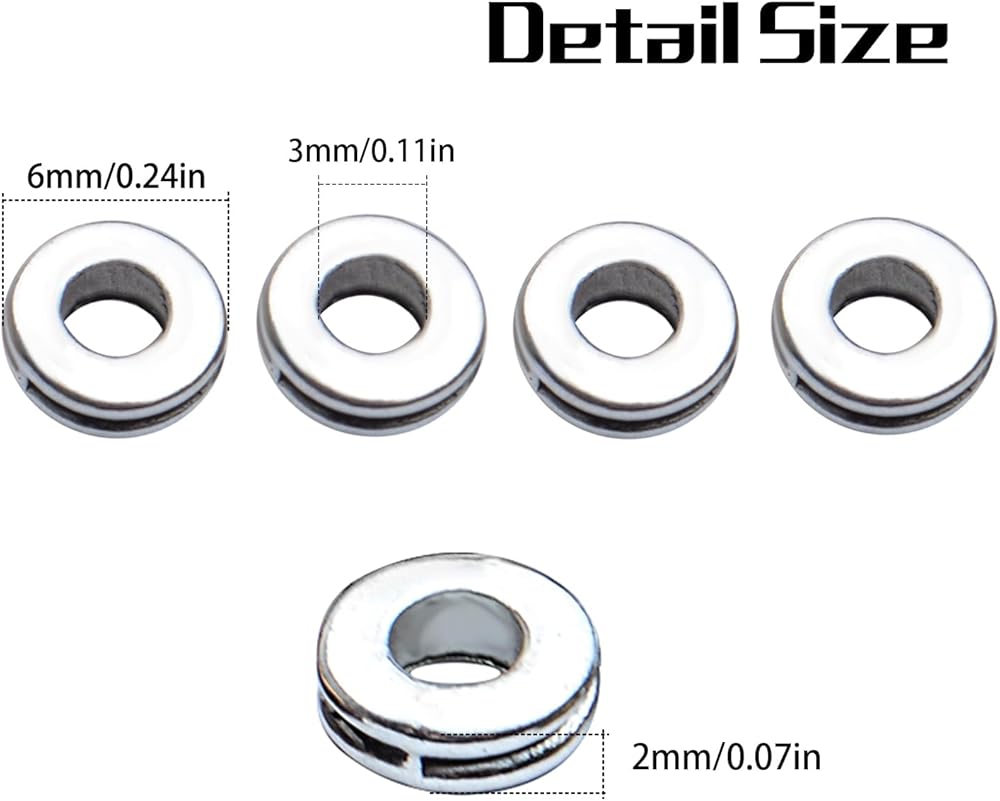 معلومات المقاس: يبلغ قطرها الخارجي حوالي 6 ملم وقطر الفتحة 3 ملم، هذه الخرزات المعدنية المستديرة بحجم مثالي كخرز فاصل.