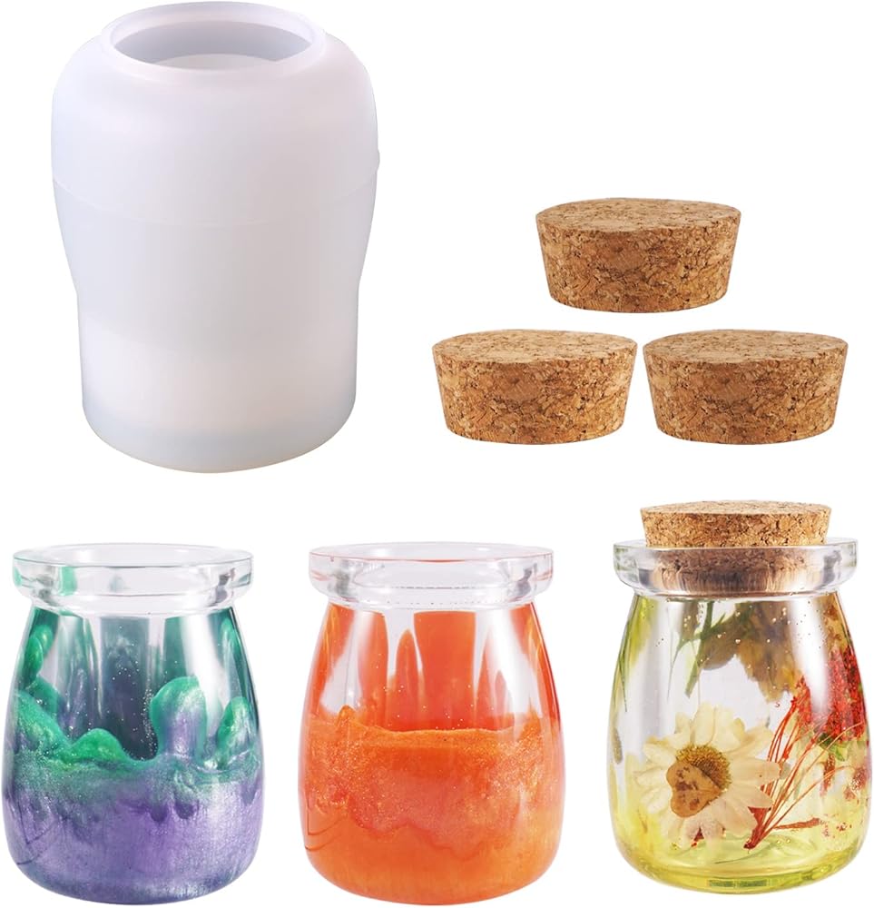 قوالب برطمانات الراتنج من لوكسوين، قالب برطمانات سيليكون مع 3 قطع من الفلين، قوالب الراتنج لبرطمانات التخزين المصنوعة يدويًا من الإيبوكسي، زجاجة تخزين، حاوية مجوهرات، ديكور المنزل