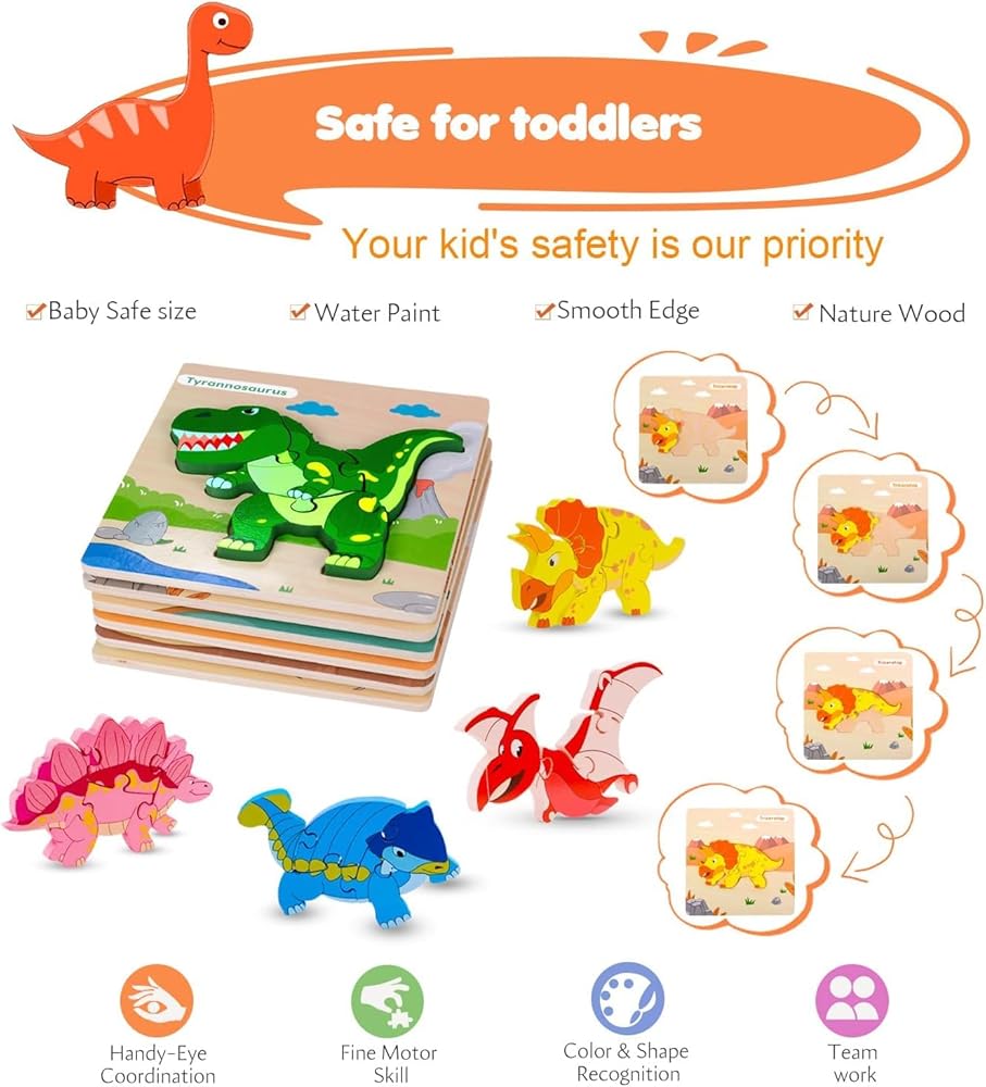 Safe Toddler Puzzles-BPA- Free,approved ASTM & CPSIA test.These wooden jigsaw puzzles are made of high-quality environmental wood with water-based paint.Safe for 12 months and up.