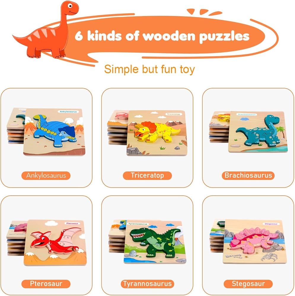 Wooden Puzzles for Toddler,Birthday Gifts Toys for 1 2 3 Year Old Boys Girls Baby Infant Kids Montessori Learning 6 Animal Pattern Jigsaw Puzzles Stem Developmental Toy
