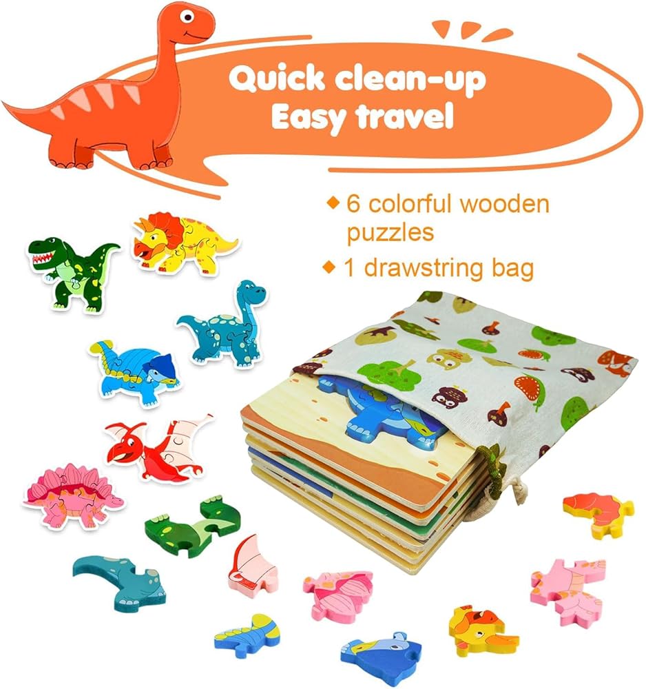 Ideal Toys and Gifts-6 animals Jigsaw puzzles,packed with portable drawstring bag. Toddlers can play the puzzles at home indoor or outdoor activity with parents or friends. It is a good birthday Christmas present for kids,children.