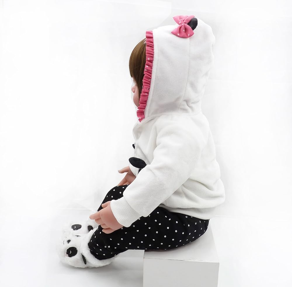 يناسب زي الباندا الجميل هذا بشكل مثالي لدميتك الصغيرة التي ولدت حديثا الولادة من جديد 43.18 سم إلى 45.72 سم. إنه خيار جيد للهدايا أو مجموعة.