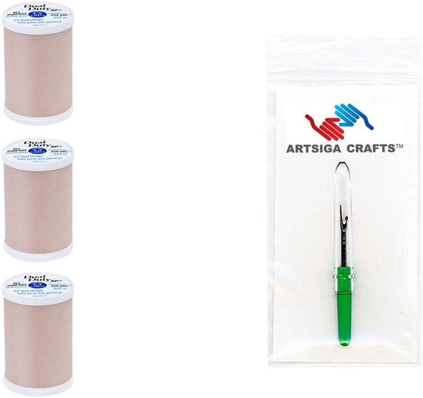 مجموعة من خيوط البوليستر ذات الاستخدام المزدوج XP من Coats & Clark للخيوط متعددة الاستخدامات 250 ياردة (3 عبوات) مع قطعة واحدة من Artsiga Crafts, بوليستر, 3-Pack