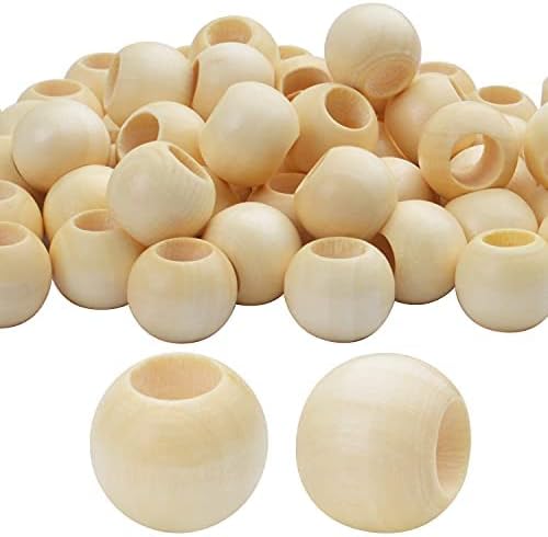 خرز خشبي طبيعي، 50 قطعة 20 ملم فواصل خشبية كبيرة خرز سائب مع فتحة 10 ملم لصنع المجوهرات والحرف اليدوية