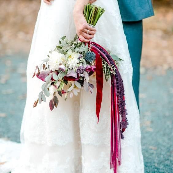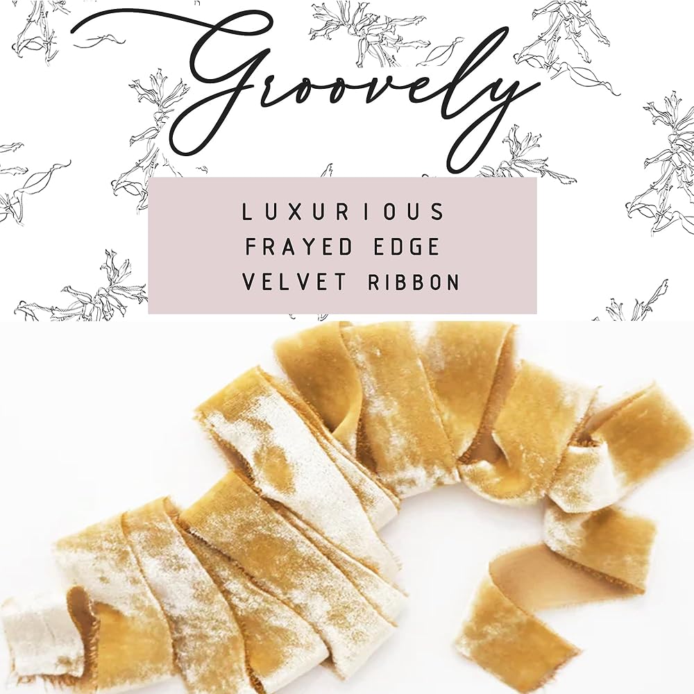 …fine art event linens for lovers of raw and untamed natural beauty; for seekers of old world romance, and for those with a classic, modern aesthetic... GROOVELY velvet silk ribbon has premium texture hand cut, handmade, hand-dyed, frayed and torn to perfection. These rustic fabric ribbons are made of high-quality velvet and 2 inch width by one continuous length of 3 yards without seams. ART OF DECORATION These extra flowy vintage ribbons have a gracefully fantastic look with its unique textured frayed edge, silk-like softness, luxurious surface with a bright sheen and wrinkles. Raw edges keep the velvet soft and draping offer perfect special stylish touch for wedding invitations, flower girl basket, gift wrapping, wedding decorations for tables, vow books. You can give a stylish look to your special gifts with this wrapping ribbon.These stunningly soft and airy ribbons are the perfect addition to your special occasions like wedding decorations, bridal shower decorations, engagement decorations, boho baby shower, boho party decorations, gender reveal decorations, Christmas decorations, Halloween decorations, Easter decorations, valentines decorations. You can combine satin gold ribbon with the velvet red ribbon or sateen burgundy ribbon with green ribbon for Christmas decor; or pink ribbon with a romantic lace ribbon, satin ribbon, silk ribbon for wedding decor and dusty blue ribbon with chiffon white ribbon for baby shower. Our perfect combinations of ribbons will give elegant and luxurious look to your special moments…