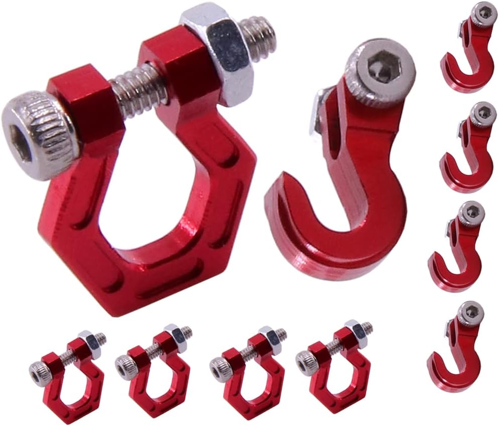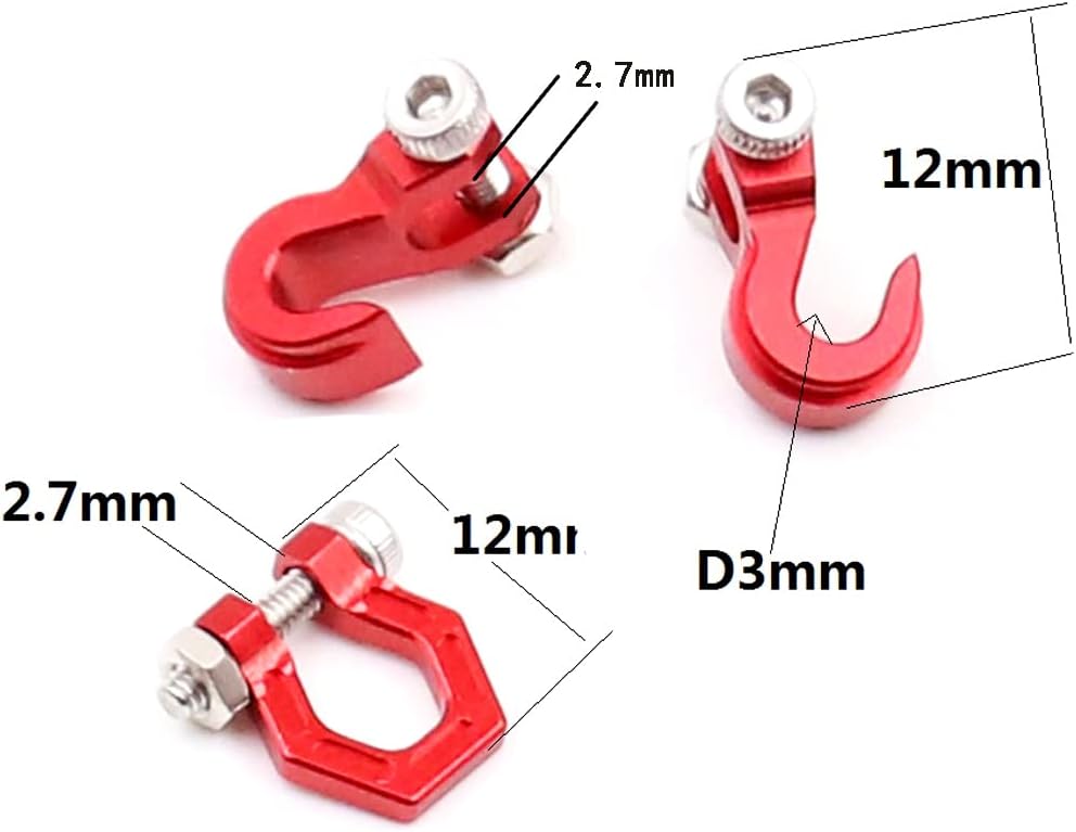 8pcs 1:10 RC Rock Crawler trailer hook metal traction shackle front and rear rod rescue latch applicable to axial scx10 Tiangong cc01 D90 D110 TF2 (red) Package: 8 pcs, including mounting screws, net weight 5g CNC numerical control technology is adopted, which is durable and beautiful. Make your car more attractive and cool Solid metal alloy material, smooth and durable, easy to install After professional testing, please rest assured that it is 100% brand new