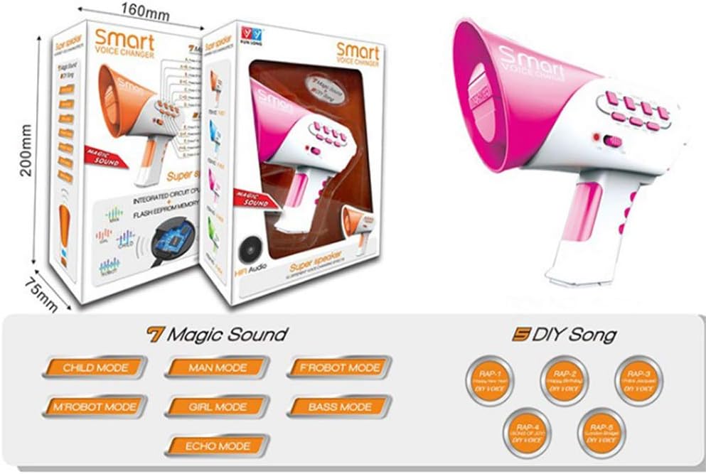 Different Voice Modifiers - The noise maker toy has 7 kinds of voice changing mode: Child, Man, MRobot, Bass, Grirl, Frobot, Echo mode, and Rap 1/2/3/4/5 for DIY voice, these different modes can meet your needs.