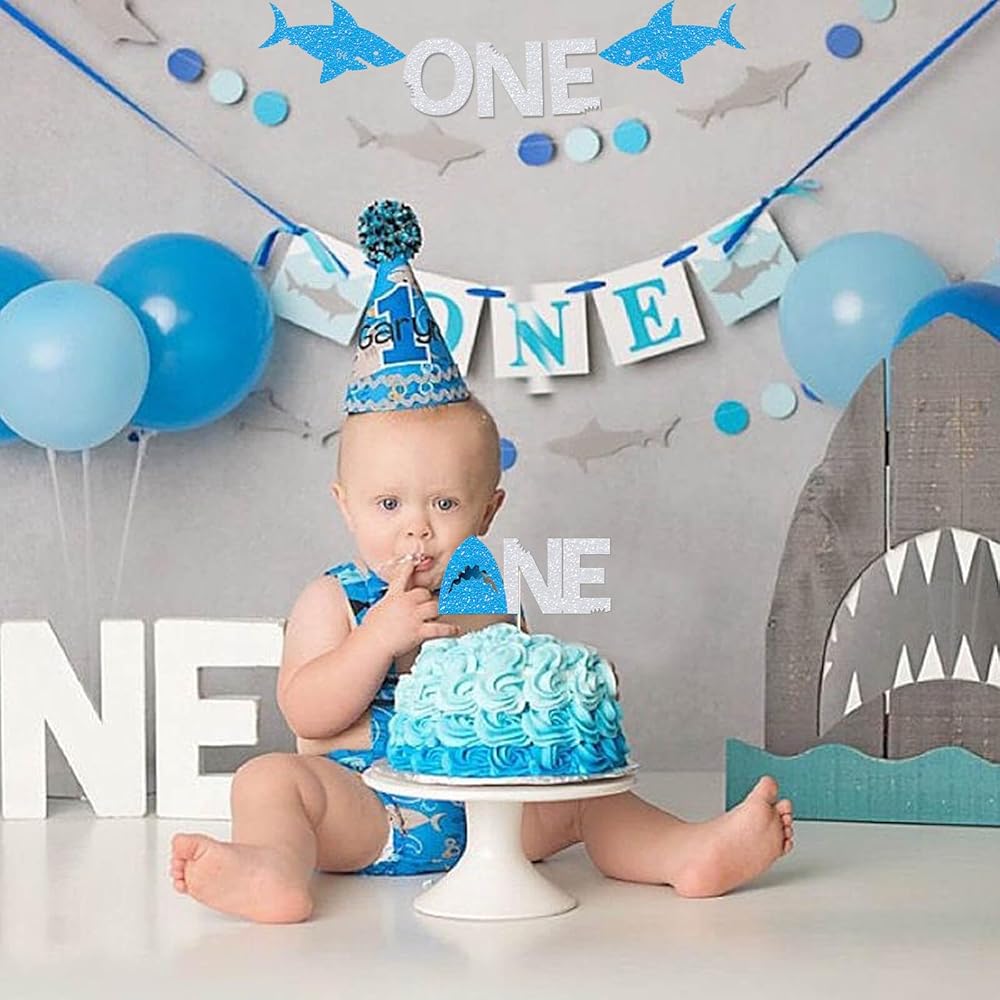 قطعة واحدة من زينة الكيك على شكل سمكة قرش "وان"