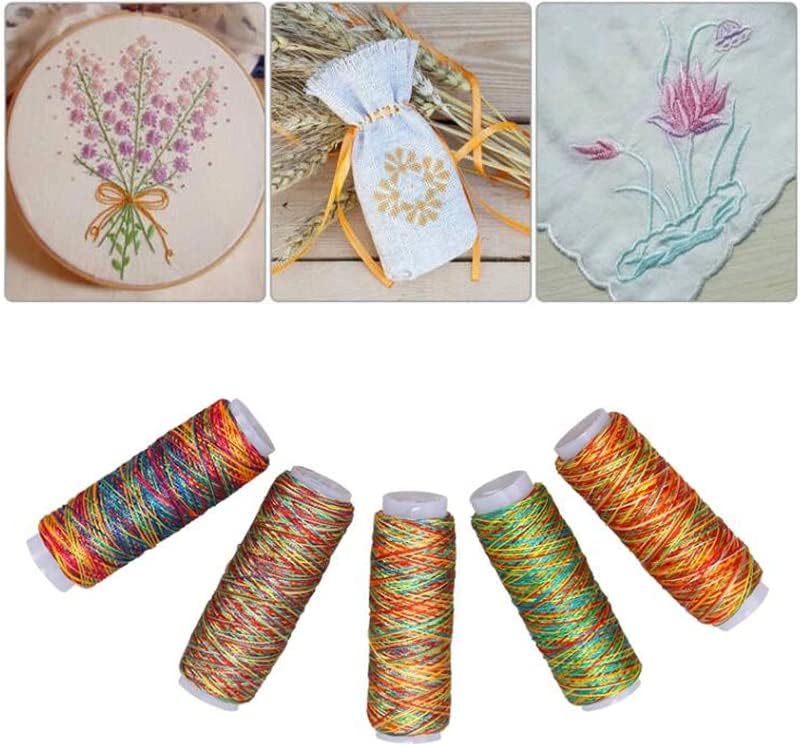 Colorful Sewing Thread Sewing Thread Color High Intensity Gradient Line Sewing Thread Craft Patch Steering-Wheel Sewing Supplies (Rainbow Colors)