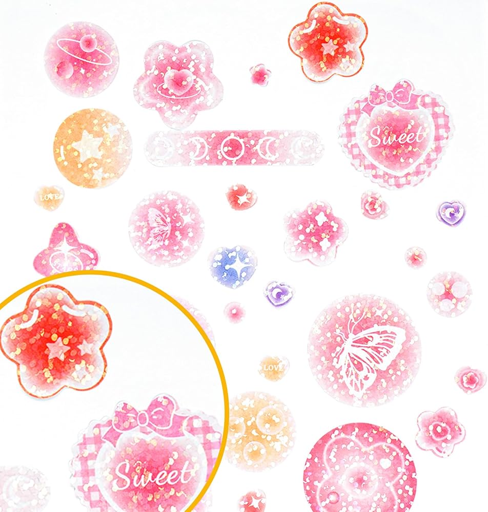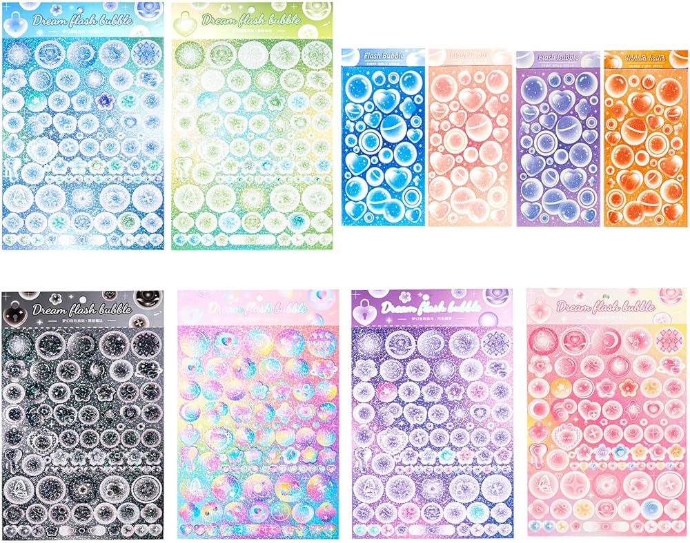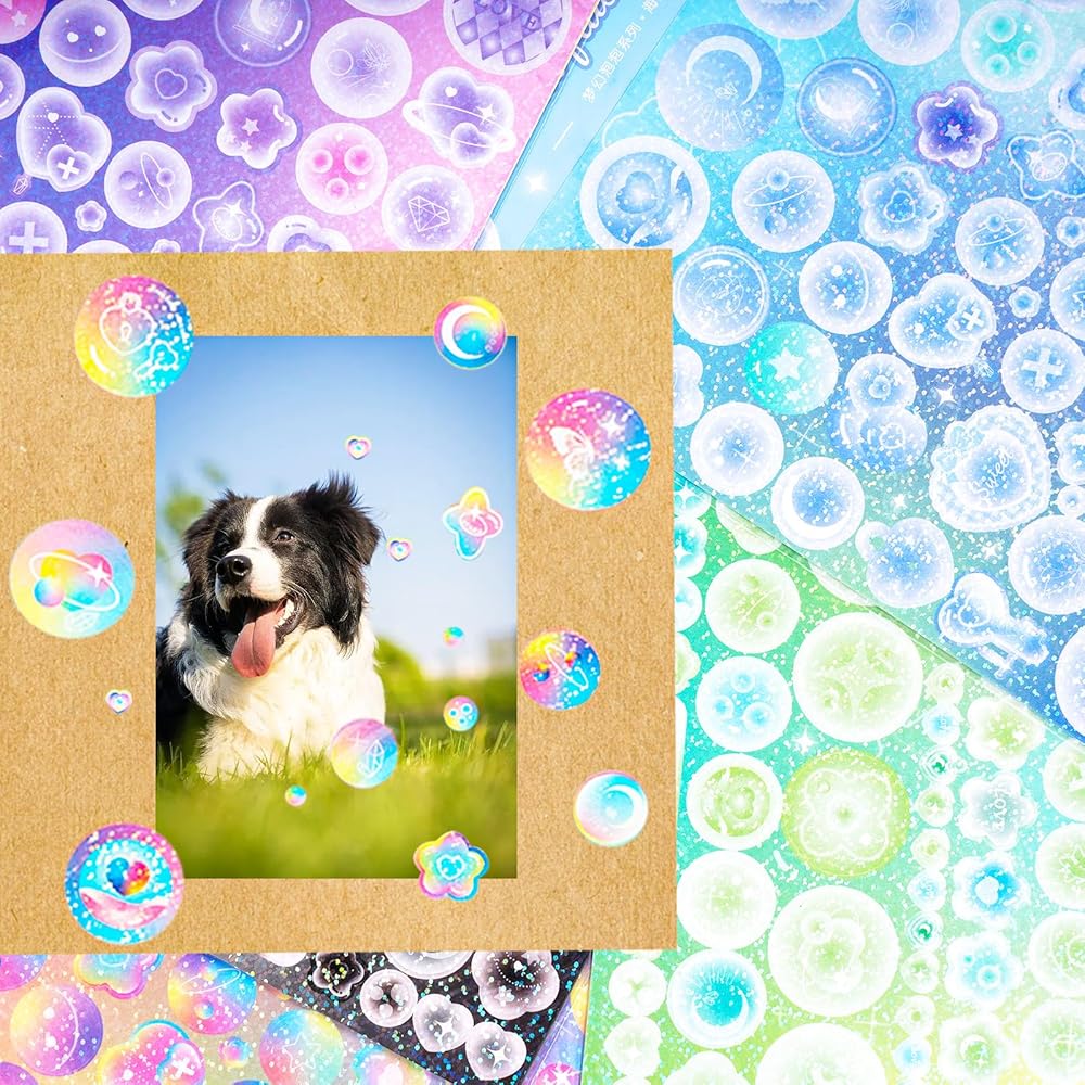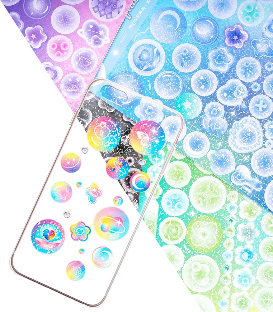 These stickers are designed colorful and beautiful,and their design idea is bubbles,and as you can see,the bubbles of these stickers can be round,flower and heart.
