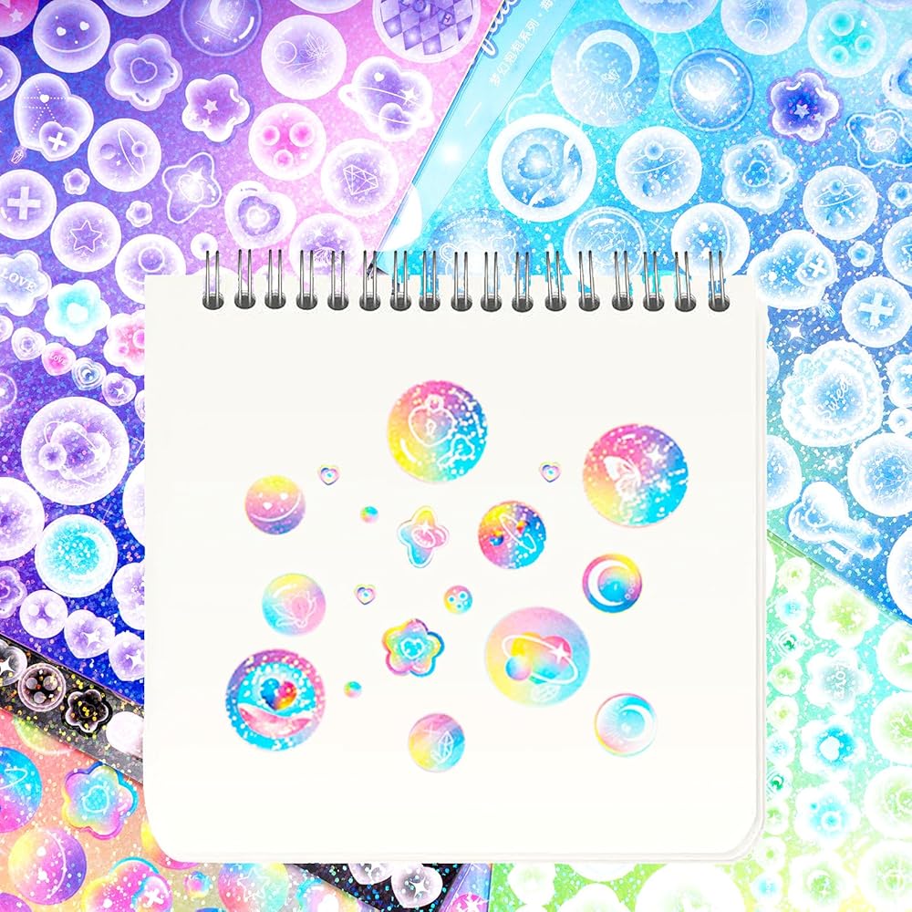 10 أوراق الكورية ديكو ملصقات فقاعات مجموعة ملصقات بريق ملون نجوم زهرة القلب القمر فقاعات ملصقات لبطاقة القصاصات DIY بها بنفسك الهدايا الحرفية