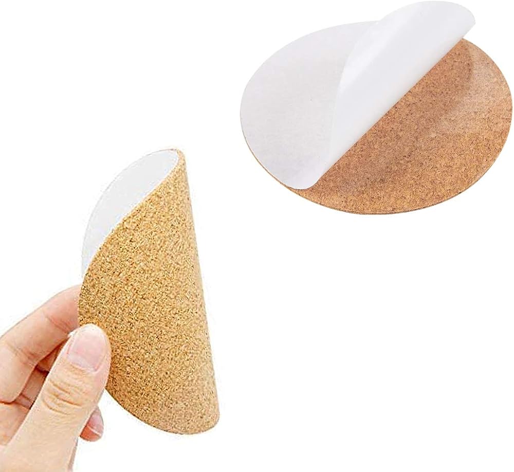 دائرة الفلين ذاتية اللصق مصنوعة من الفلين الطبيعي مع لاصق على الظهر، وقابلة للتحلل البيولوجي، وقوية، وخفيفة الوزن، وناعمة الملمس.