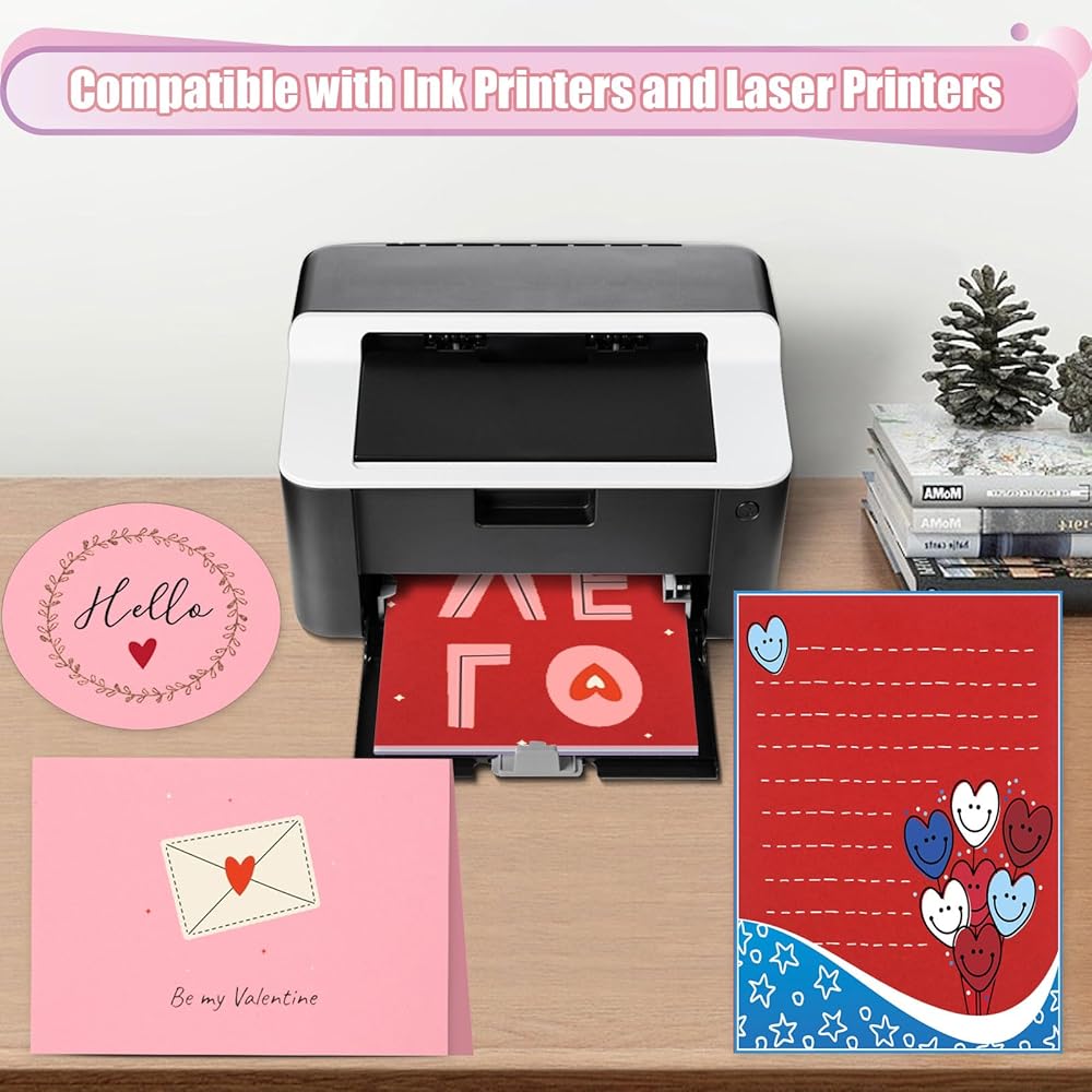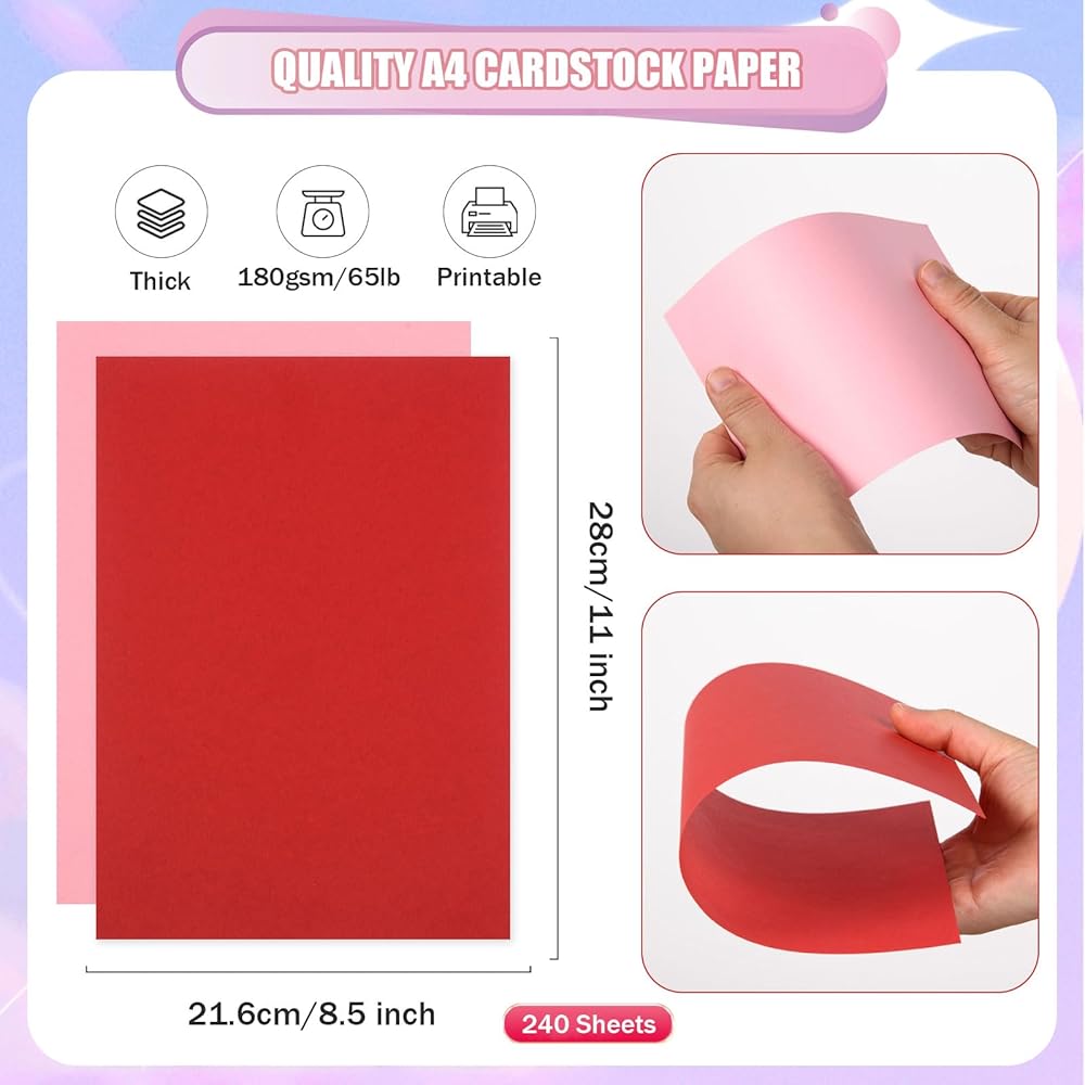 The cardstock is quality and reliable, great for writing or printing, and the paper can easily be cut, folded, and glued into the size or shape you need, easy to DIY your personalized Valentine's Day cards or party decorations.