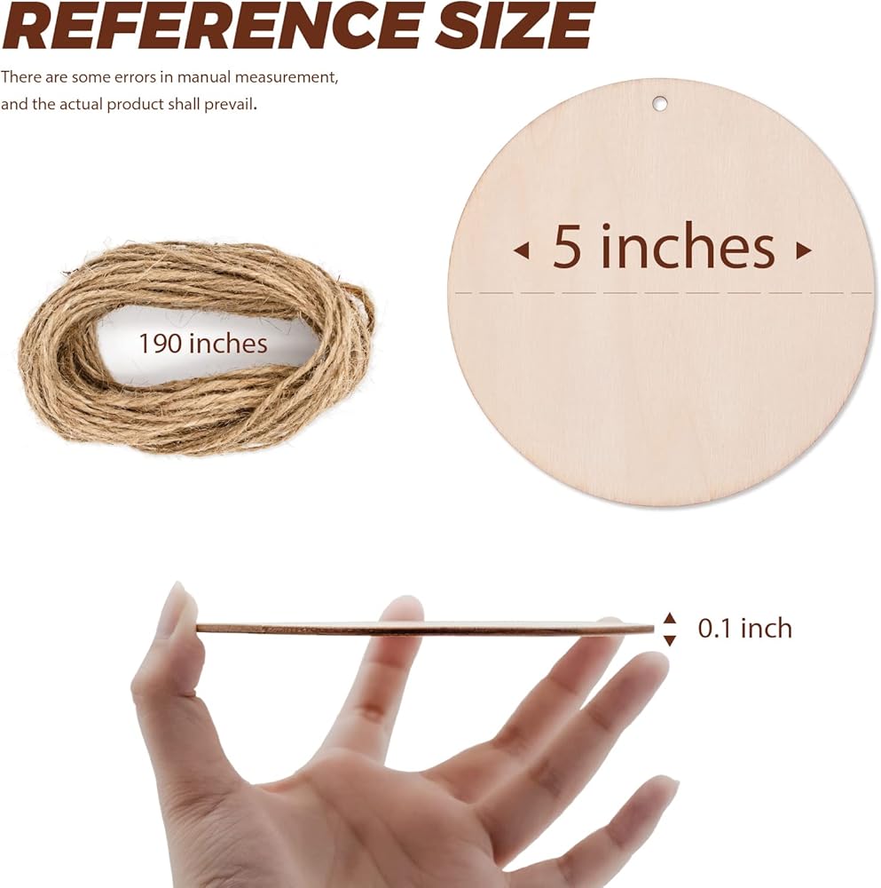 العبوة القيمة: 30 قطعة من الدوائر الخشبية غير المكتملة + 6 قطع استنسل عيد الميلاد + حبل جوت 5 متر. علامة خشبية دائرية مقاس فارغ تقريبًا. : قطر 5.12 بوصة وسمك 3 مم، مقاس استنسل الرسم تقريبًا. : القطر 5.12 بوصة. كمية كافية لاحتياجات الأعمال اليدوية ومشاريع التزيين الخاصة بك.