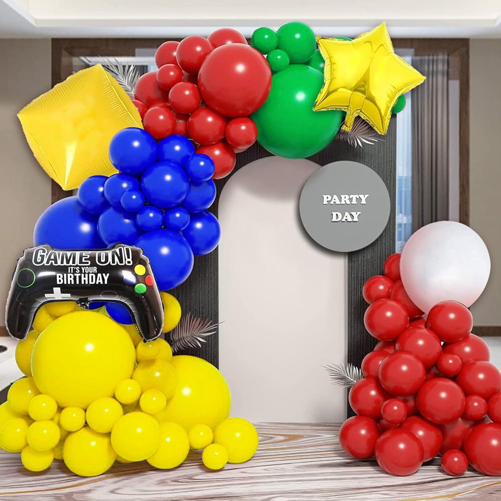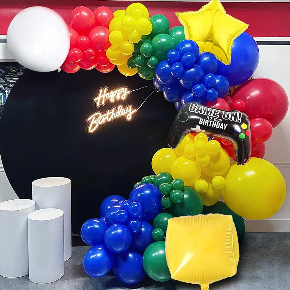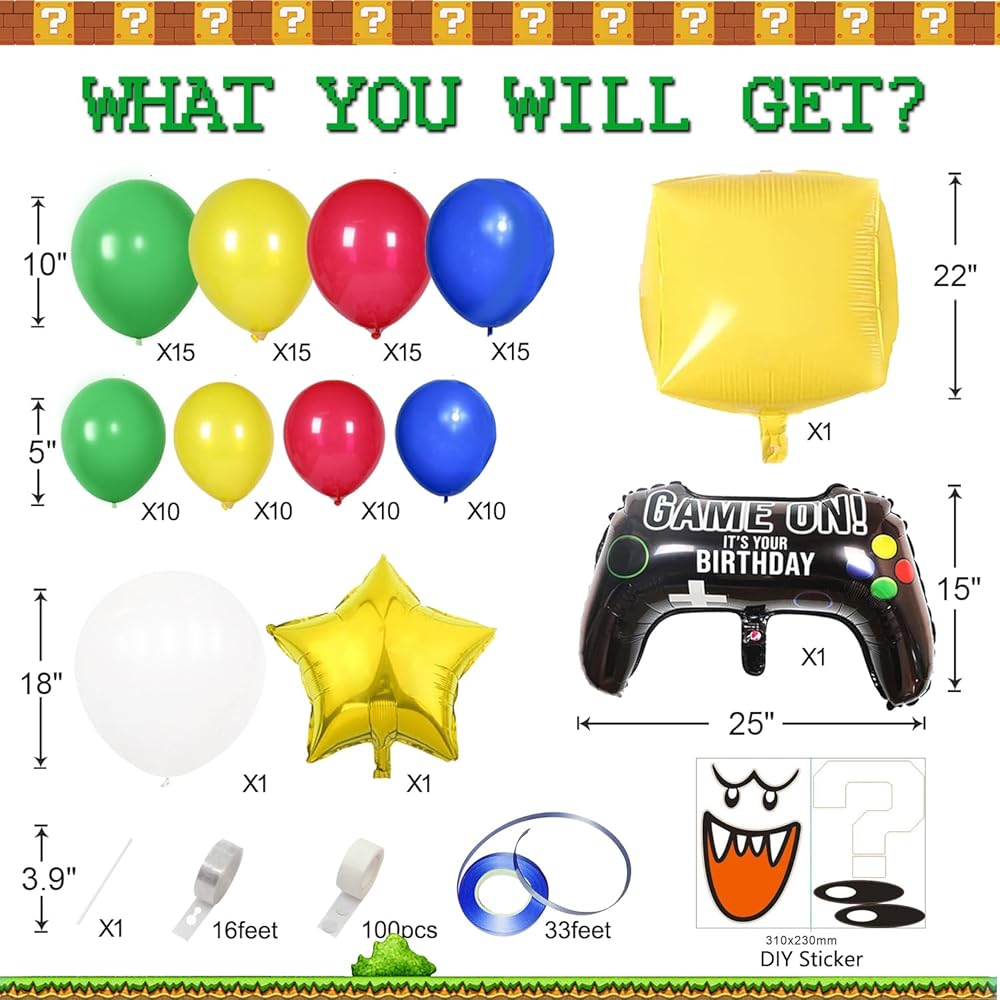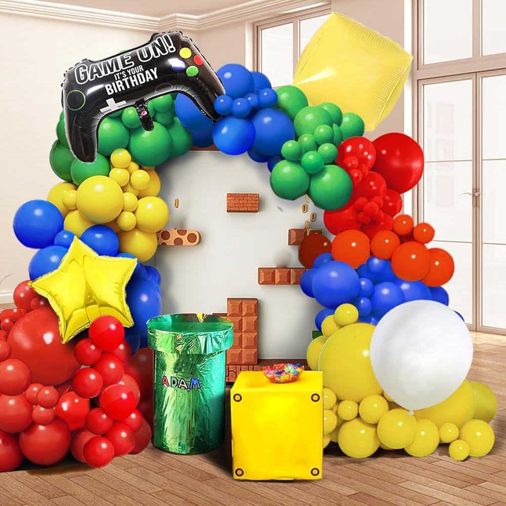 💕【طقم قوس بالون أحمر وأزرق وأصفر وأخضر 】هل تخطط لحفلة فيديو جام ماريو لعيد الميلاد أو حفل استقبال المولود الجديد أو أي احتفال آخر؟ هذه المجموعة الرائعة من البالونات باللون الأحمر والأزرق والأصفر والأخضر ستجعل ضيوفك على استعداد لمشاركة مقاطع الفيديو حول الحدث الخاص بك.