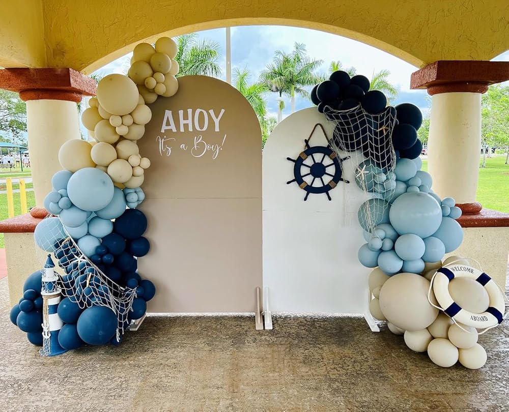 138pcs Navy Blue Balloons Garland Arch Kit Double-Stuffed Night Blue Dusty Blue Nude Blush Latex Balloons for Birthday Party Graduation Baby Shower Wedding Ocean Decoration