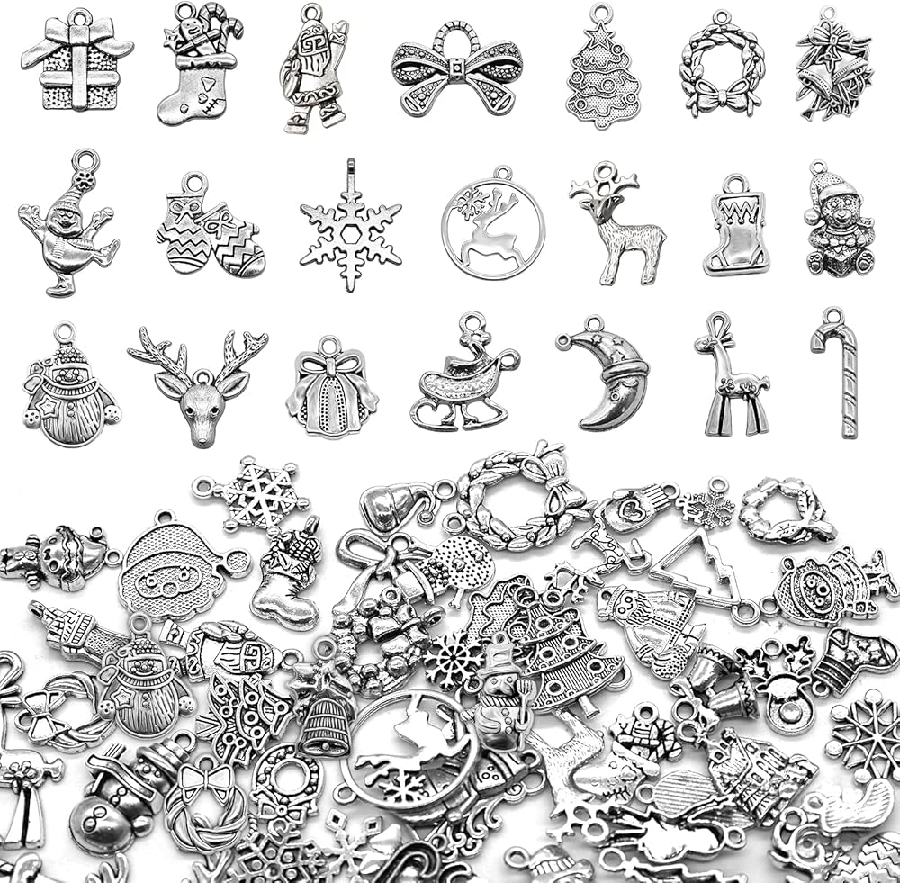 Newmemo عيد الميلاد سحر 100 جهاز كمبيوتر شخصى لوازم الحرفية المختلطة شجرة عيد الميلاد الثلج الغزلان جرس تخزين سحر المعلقات العتيقة الفضة عيد الميلاد الحلي النتائج مجوهرات صنع التبعي ل DIY قلادة سوار