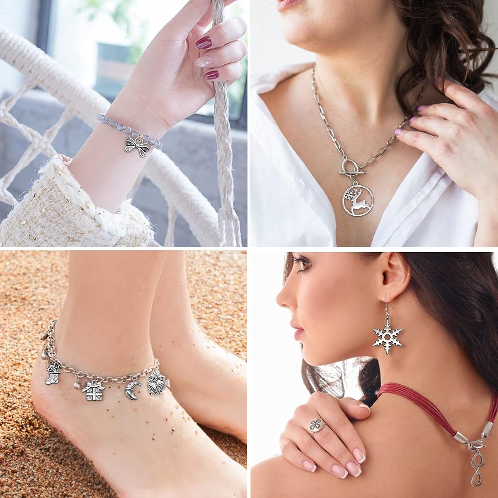 🦌【صناعة المجوهرات بنفسك】يمكنك استخدام قلادات عيد الميلاد هذه لتخصيص زينة عيد الميلاد المفضلة لديك وصنعها بنفسك. سحر معدني فضي، إنه رائع وعصري ومبتكر ومبتكر ومليء بالوسائل الخاصة، وهو ملحق مفيد جدًا، وسحر تصميم رائع وكلاسيكي.