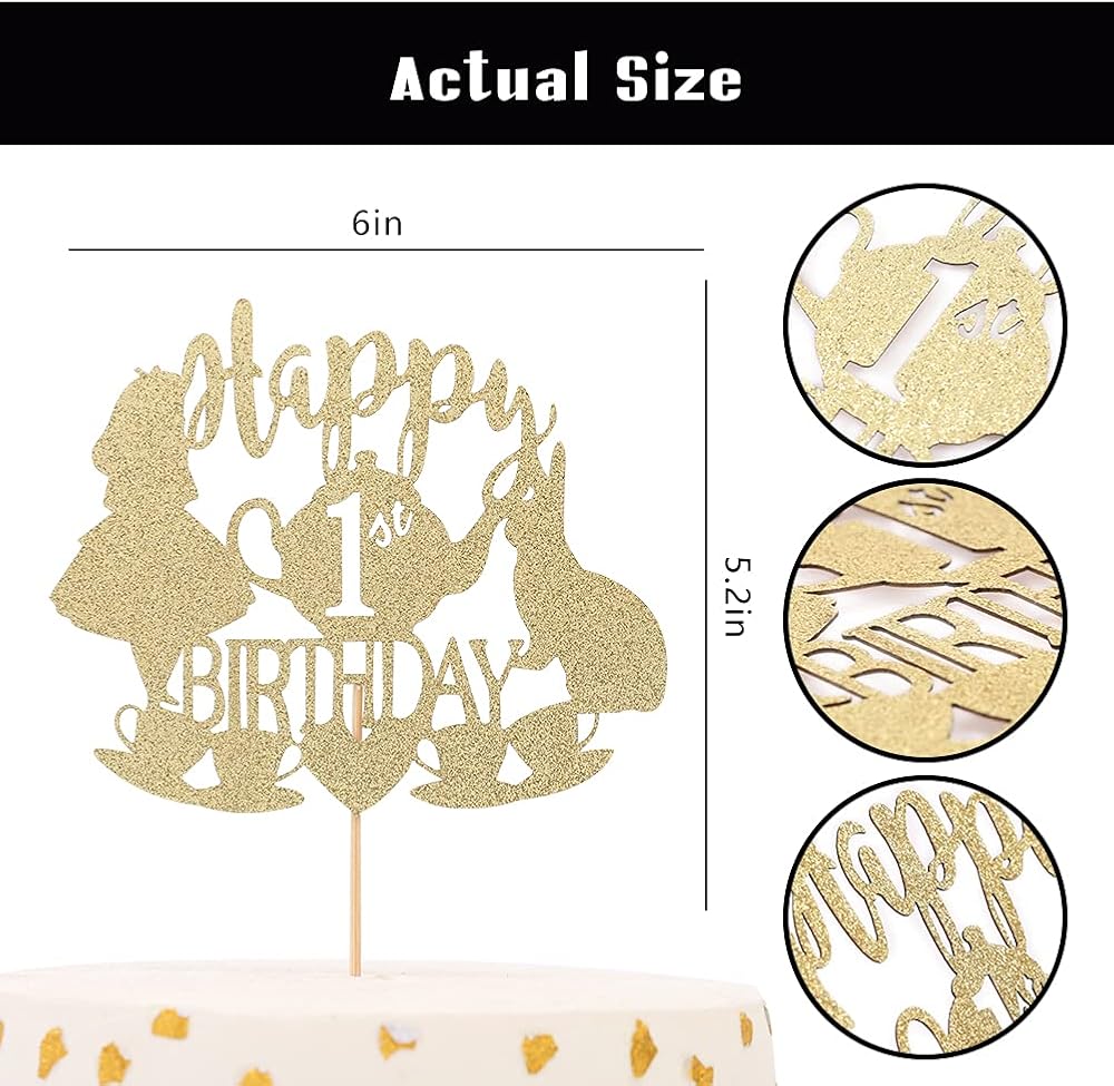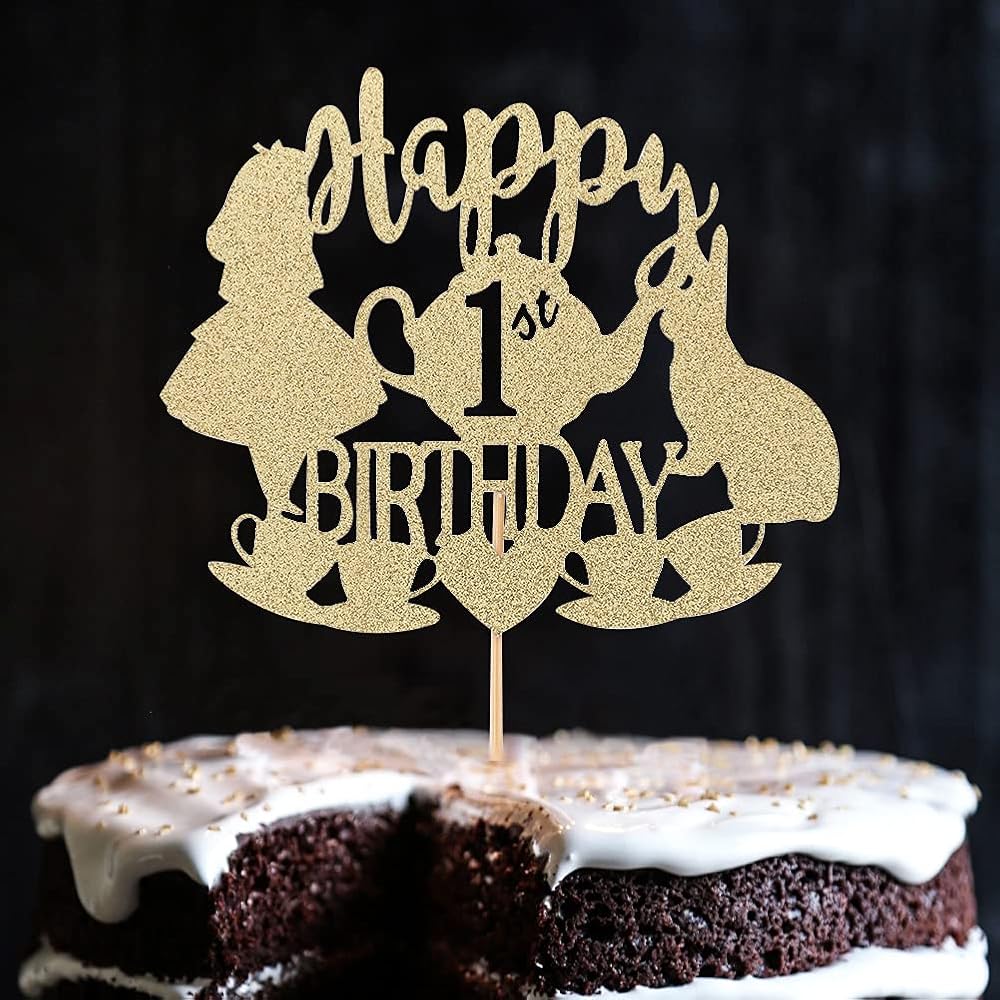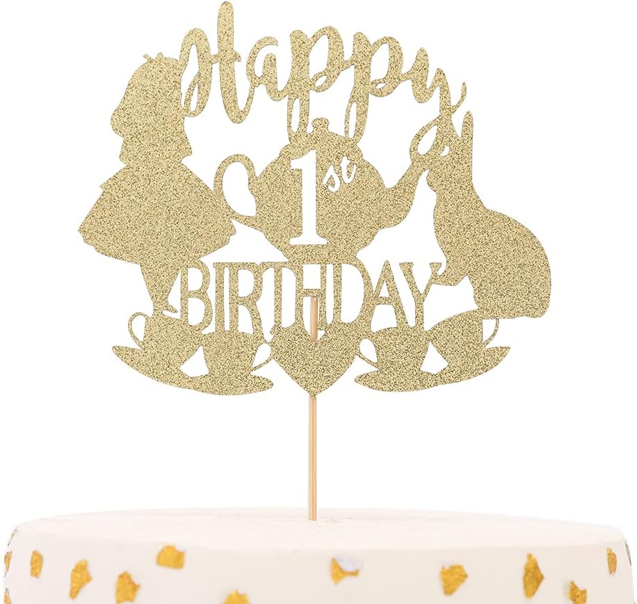 • APPLICABLE PLACES - Tea Party, Easter, Bunny Theme, Alice in Wonderland, Girl Birthday Theme Party, and with Our Alice in Wonderland "happy 1th Birthday" Decoration Items, Cake Topper As a Foil, the Whole Party Night Will Be Very Wonderful.