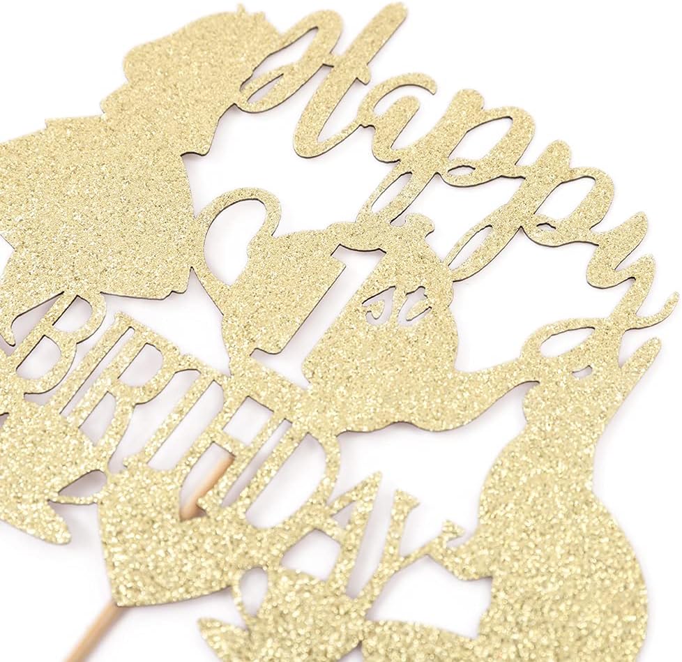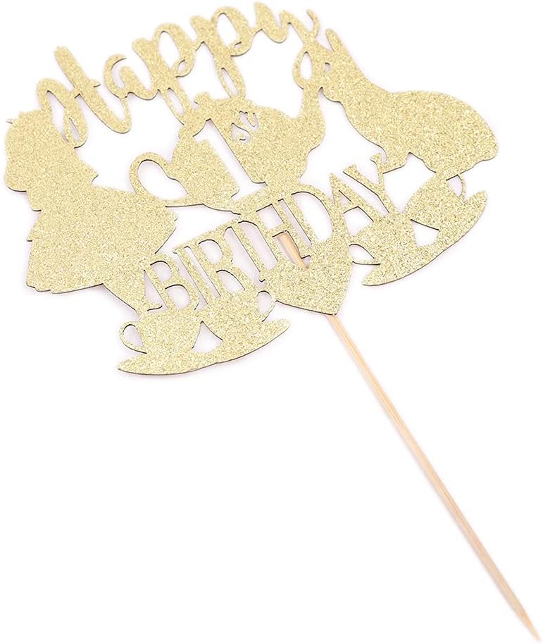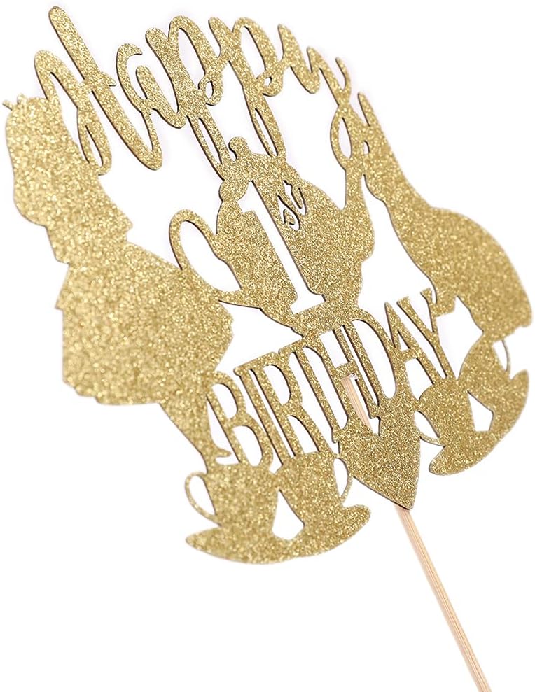 • GOLDEN GLITTER CAKE Topper - Use the Word "HAPPY 1th BIRTHDAY" In the Topper and Decorated with the Protagonist Alice on the Left, and Her Adventure Bunny on the Right. at Your Child's First Birthday Party, Dress Up This Fantasy Wonderland Cake Supplies It Must Be of Extraordinary Significance. at Her First Birthday Party, Take Your Child to Open This Dream Night, So Don't Leave Any Regrets and Prepare Amazing Cake Decorations for Your Child.