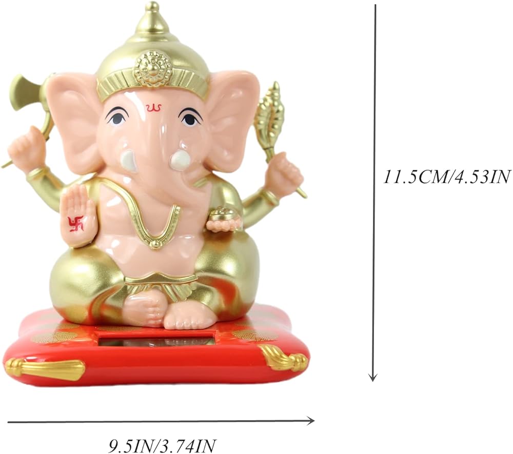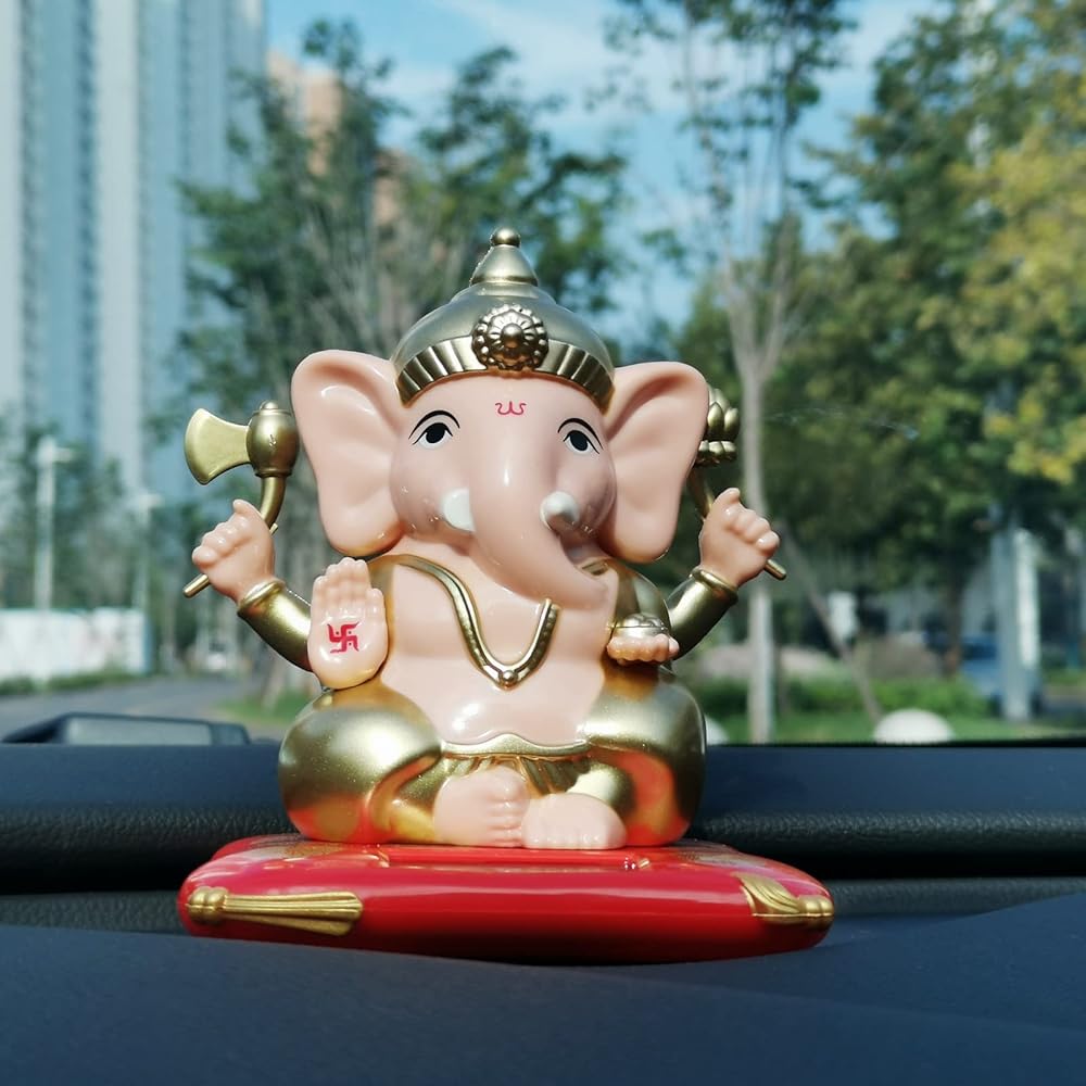 مجسم غانيش ايدول صغير للزينة من ايلودي او، مجسم غانيش ايدول لتابلوه السيارة، لعبة رأس هندي جانباتي تعمل بالطاقة الشمسية، هدايا احتفالية لديكور نافذة المنزل والمكتب
