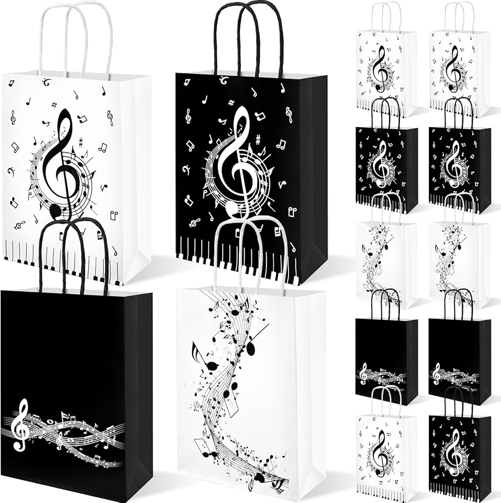 🥳🎹🥳Package includes: the package comes with 24 pieces of party gift bags with handles, and they have 4 designs, 6 pieces for each design, ideal for music parties and other celebrations as a party bags for candy, chocolate and small gifts.
