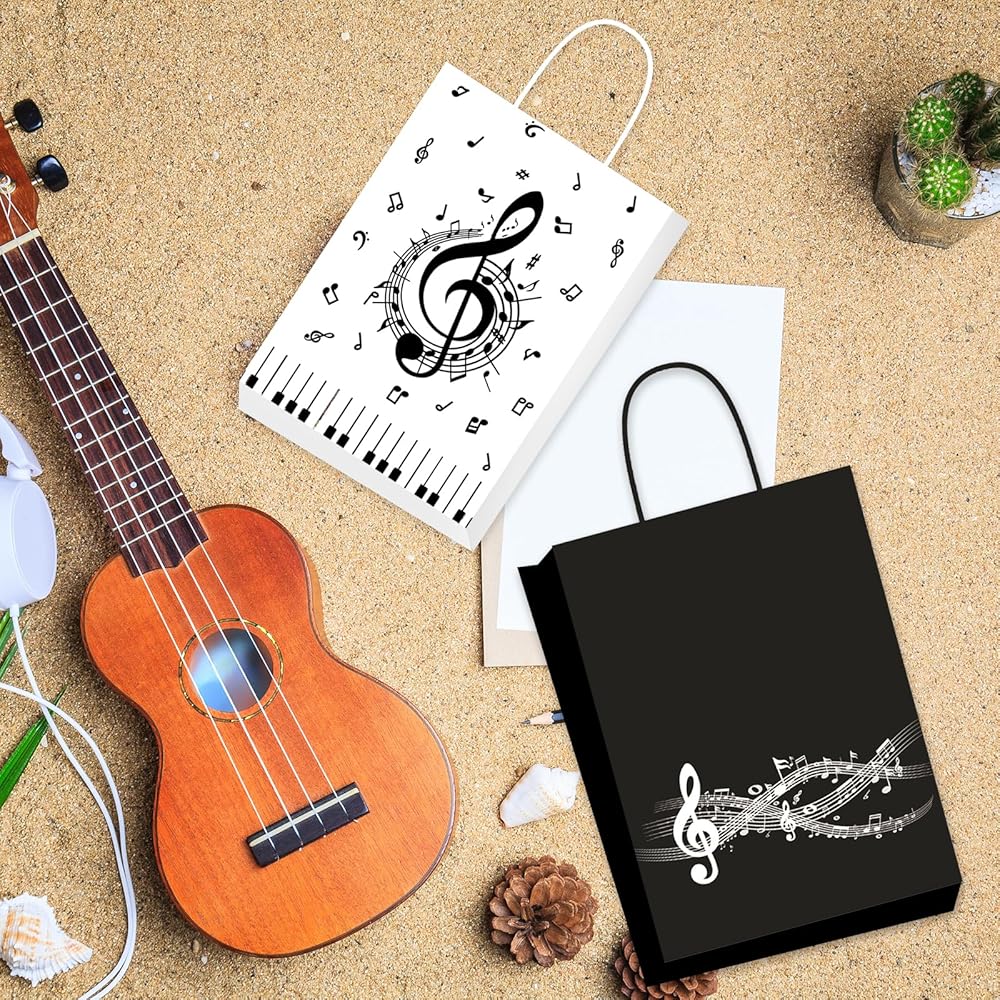 24 قطعة من أكياس هدايا الملاحظات الموسيقية، حقائب هدايا ورقية موسيقية لوسائل التواصل الاجتماعي، موضوع الموسيقى، حفلة عيد ميلاد، استحمام الطفل، لوازم الحفلات الموسيقية