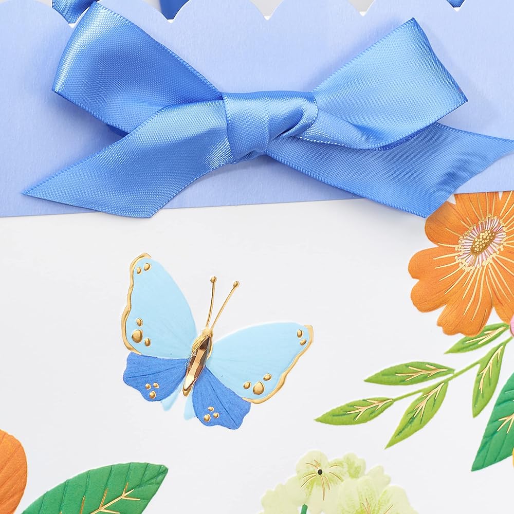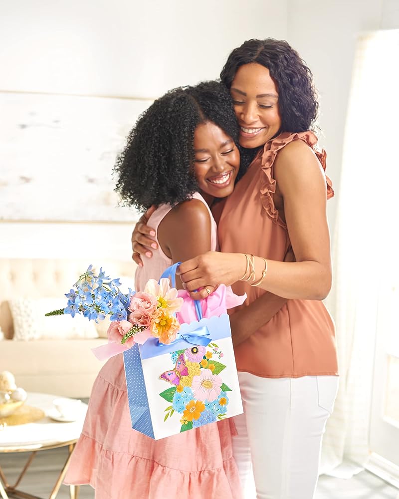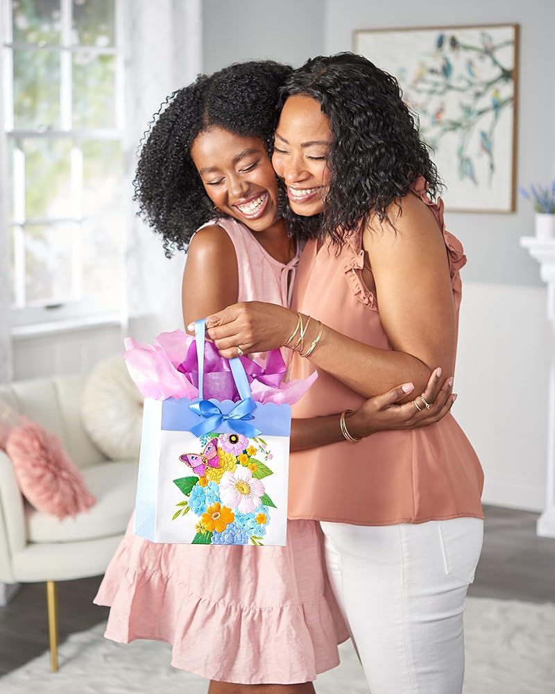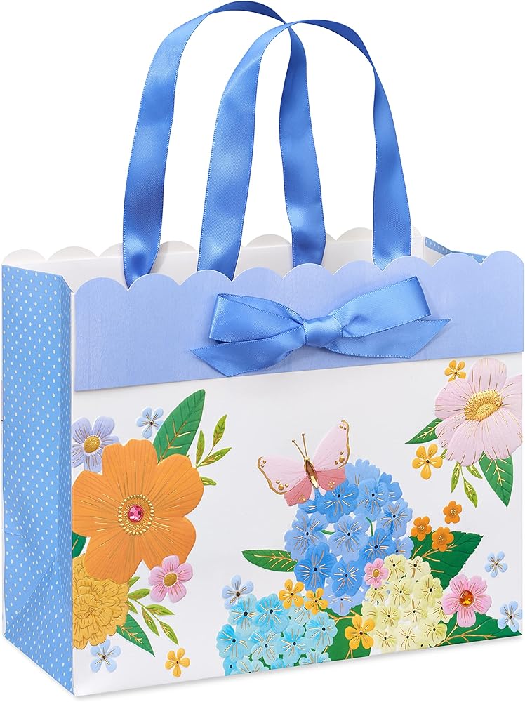 Make someone's gift even more special with this beautiful gift bag from Papyrus! This contemporary premium bag features scalloped edges and a floral design with metallic foil, gems, embossing, paper attachments, and satin ribbon handles. Make your presentation more gorgeous with Papyrus tissue paper (sold separately) for the perfect finishing touch. Great for Mother's Day, a birthday, or just because. Medium gift bags from Papyrus are perfect for wrapping special gifts like clothing, home decor items, toys, stuffed animals, electronics and other hard-to-wrap presents. Crafted with the finest materials, Papyrus gift bags are sure to enhance your gift presentations in unique ways!