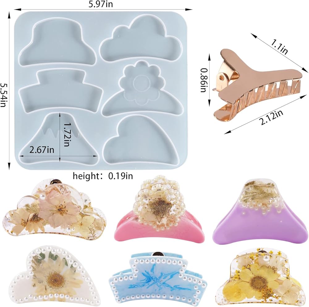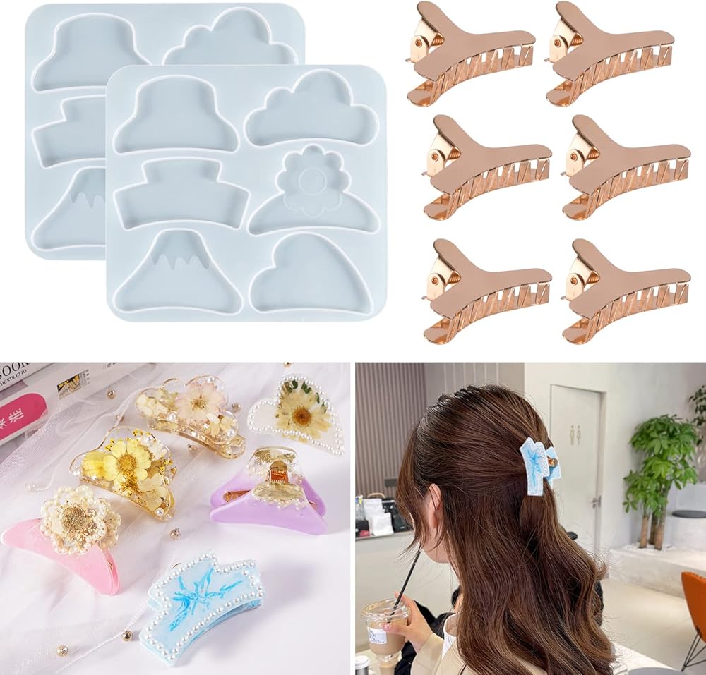 لوكسوين قطعتان من قالب صب المجوهرات ودبابيس الشعر بنفسك مع 6 ملحقات دبابيس شعر لصنع دبابيس الشعر، قوالب سيليكون لقوالب مجوهرات راتنج الايبوكسي