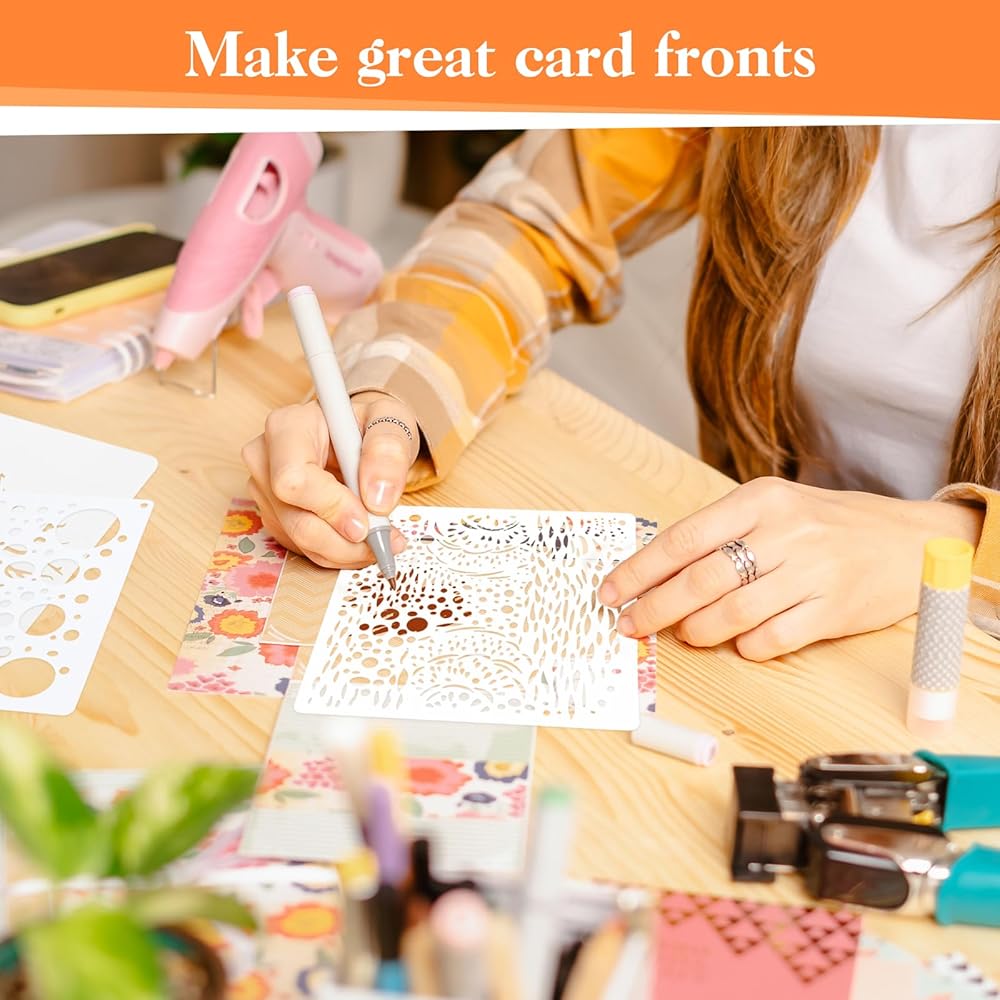【Unique Design】:Art stencils are designed with various multimedia patterns, such as cell theory, geometric figures, cell theory, poplar trees and branches, etc. You can use these hollow stencils for design and artistic creation, bringing different textures and aesthetics to better attract people attention.