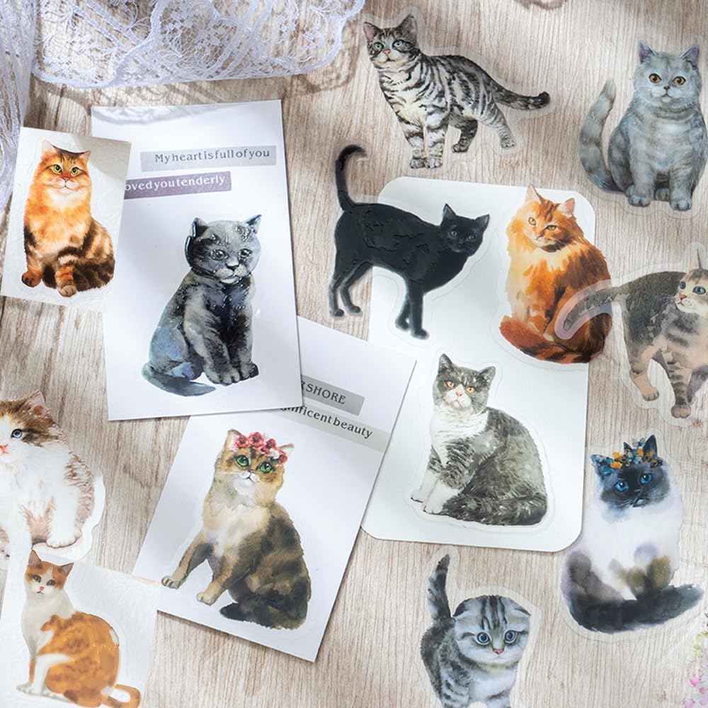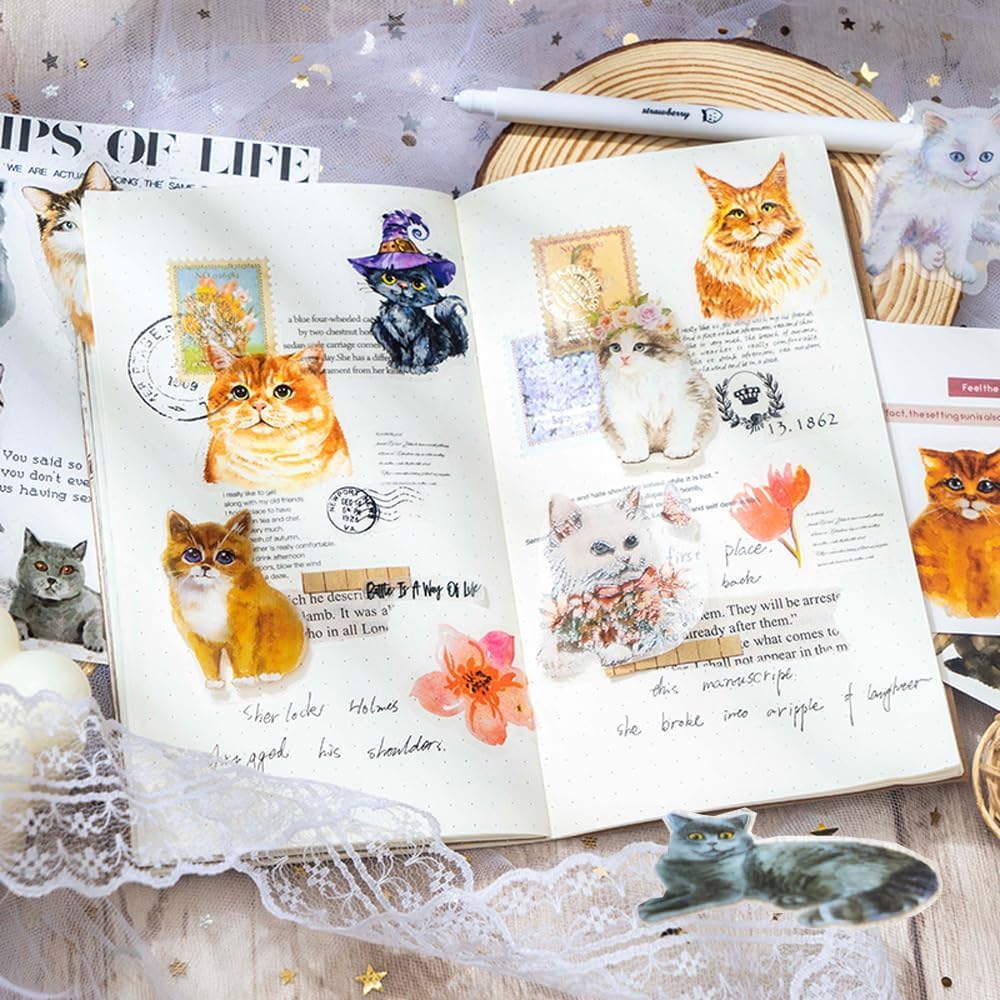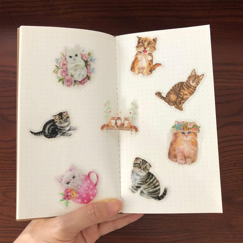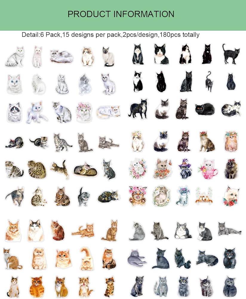 180 قطعة من ملصقات القطط اللطيفة من الفينيل، ملصقات زخرفية، ورق قصاصات لوازم دفتر اليوميات لتخطيط دفتر اليوميات وزجاجة المياه والنوت بوك والالبوم الجوال والرصاصة والحرف الفنية