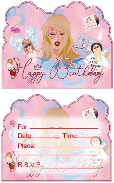 20 Pcs Taylor Singer Birthday Party Invitation Cards for Kids Birthday Party Supplies