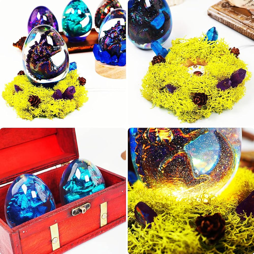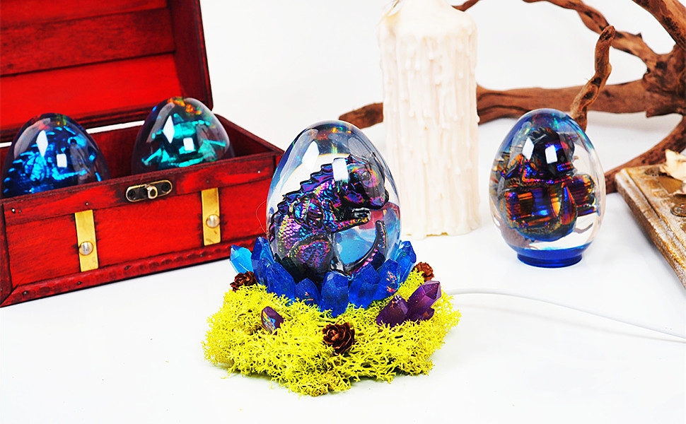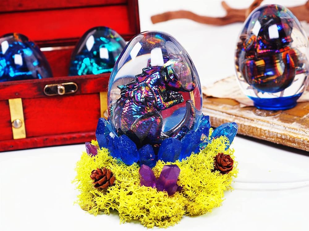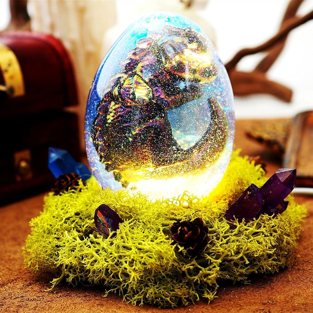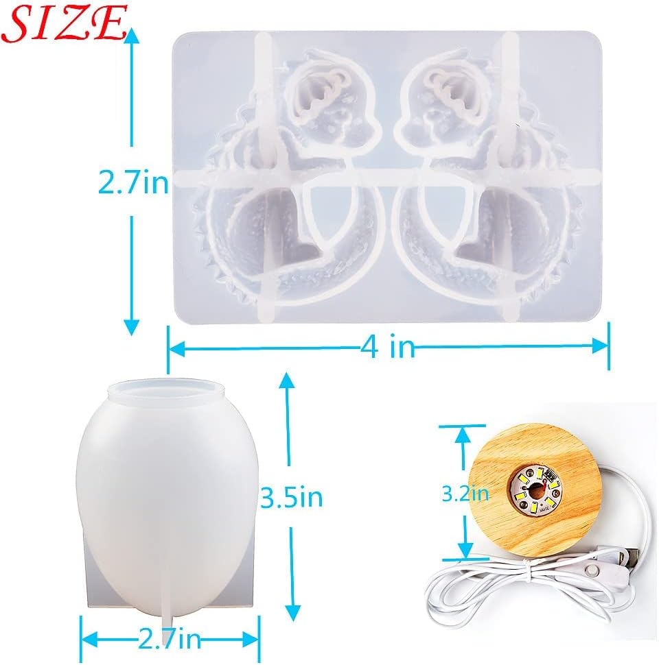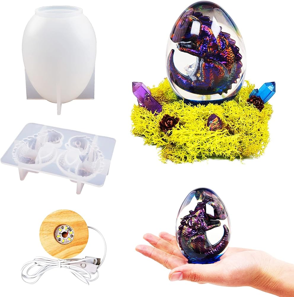 مجموعة قوالب راتنج الإيبوكسي بيضة التنين ، ديناصور البيض راتنج العفن سيليكون مع قاعدة مضيئة خشبية تعمل باليو إس بي ، قوالب التنين لصب الراتنج DIY فن الحرف مصباح سطح المكتب كريستال زين حزب ديكور المنزل
