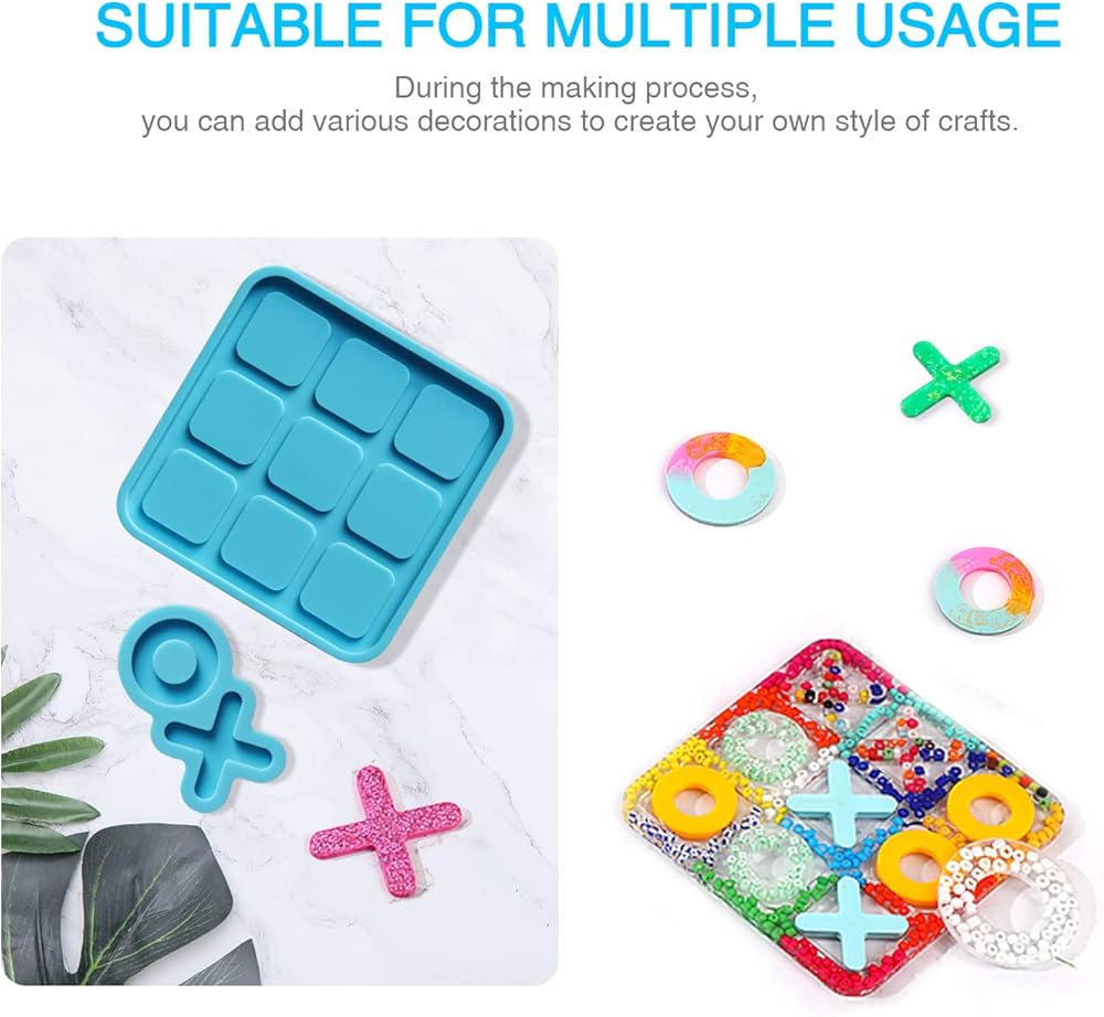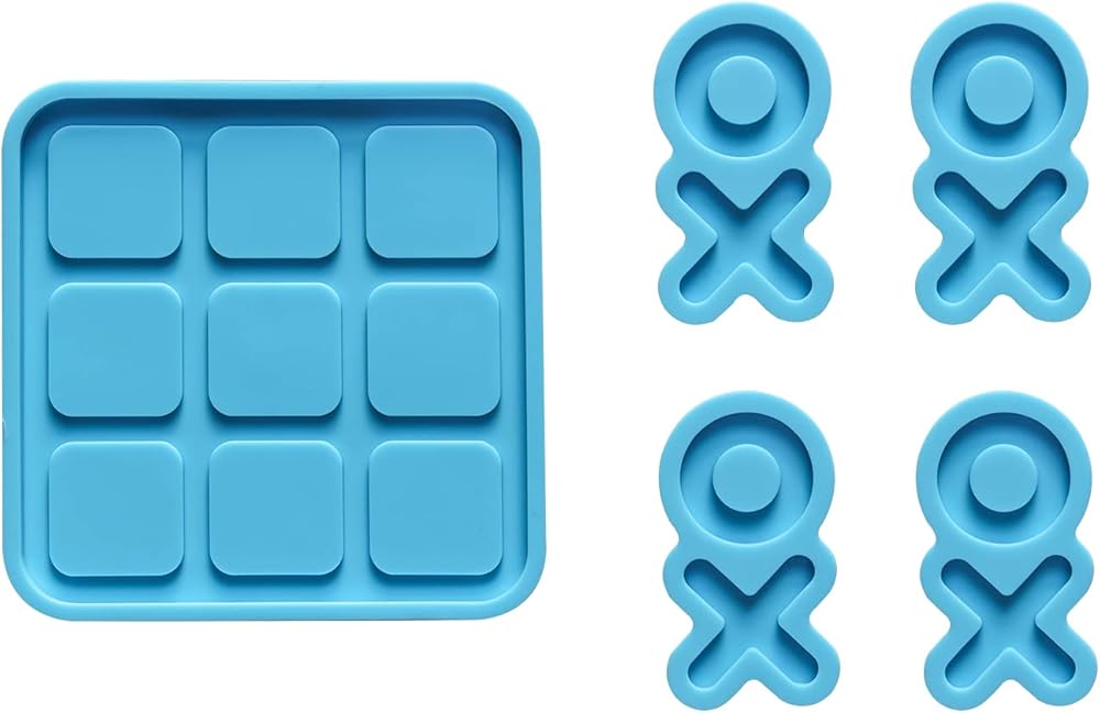 【مجموعة قوالب تيك تاك تو من الراتنج】1 قالب تيك تاك تو و4 قوالب شطرنج.