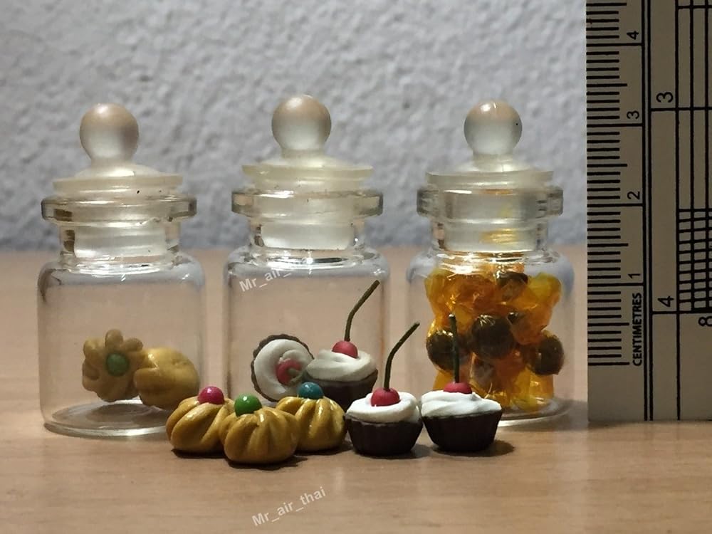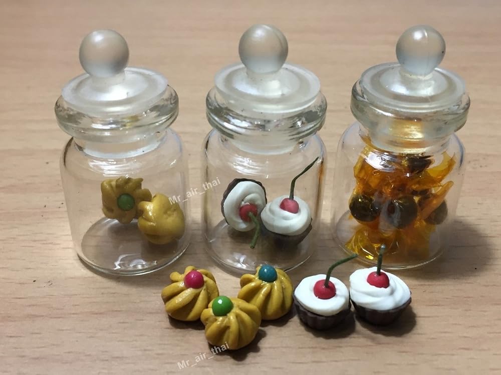 3 قطع مصغرة للبسكويت والكيك والحلوى وكعكة بيت الدمى في زجاجة صغيرة من الزجاج الشفاف مزيج الفاكهة الليمون #MF008