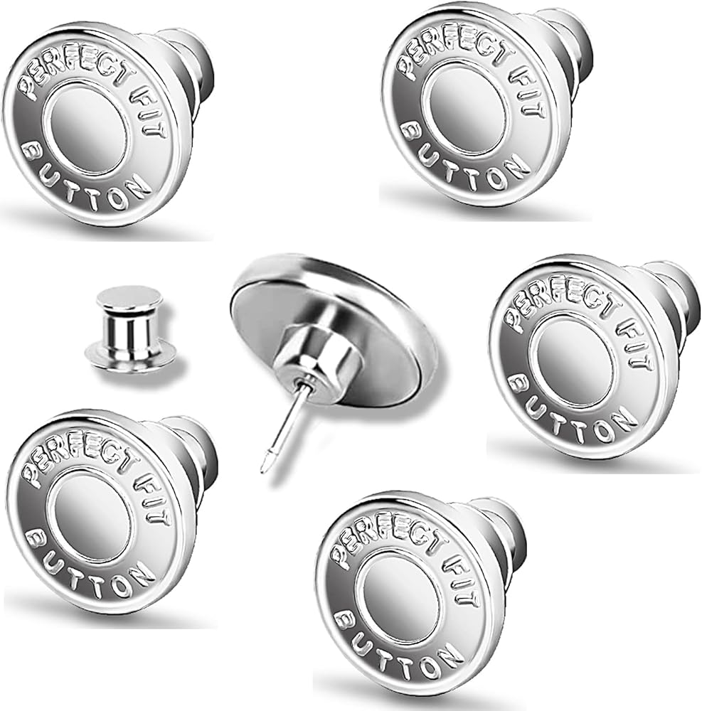 【12 Sets Button Pins for Jeans】:12 sets one pack,17mm in dia,silver and shining beautiful jean button pins is helpful to save your loose jeans.