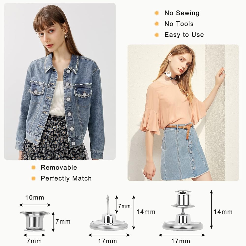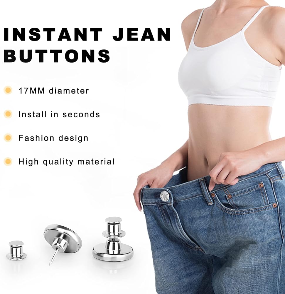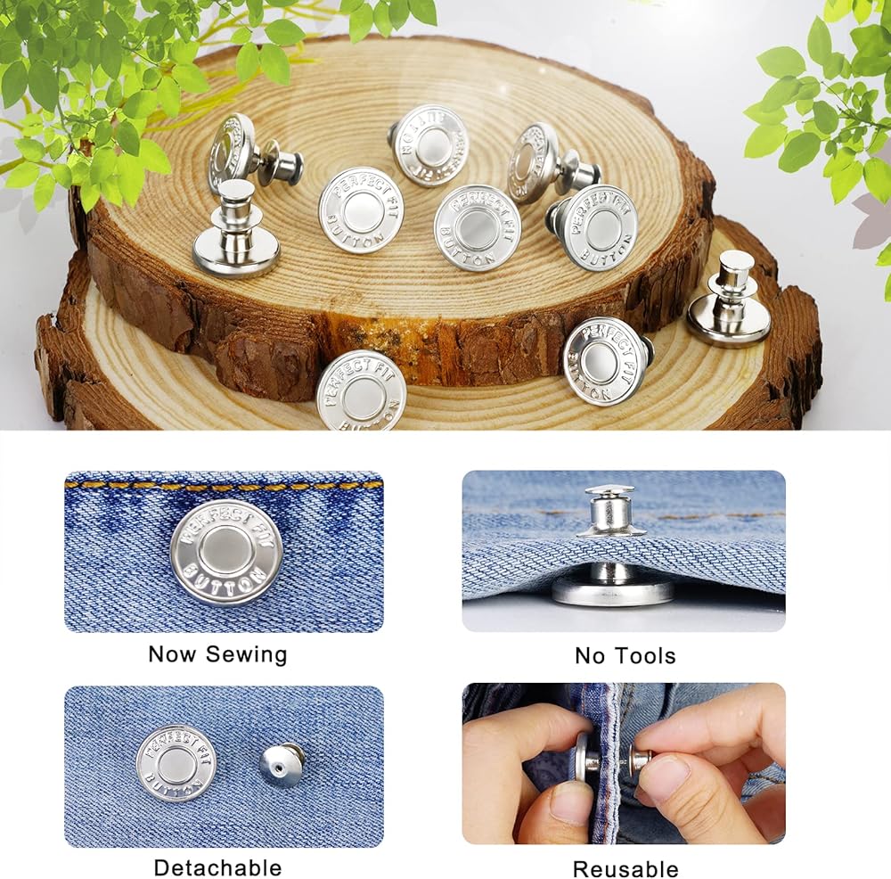 【Widely Application】:Jean button pins is suitable for jeans, pants, shirt, jacket, hat, bag and so on.you can use it to extend or reduce the waist size by will.